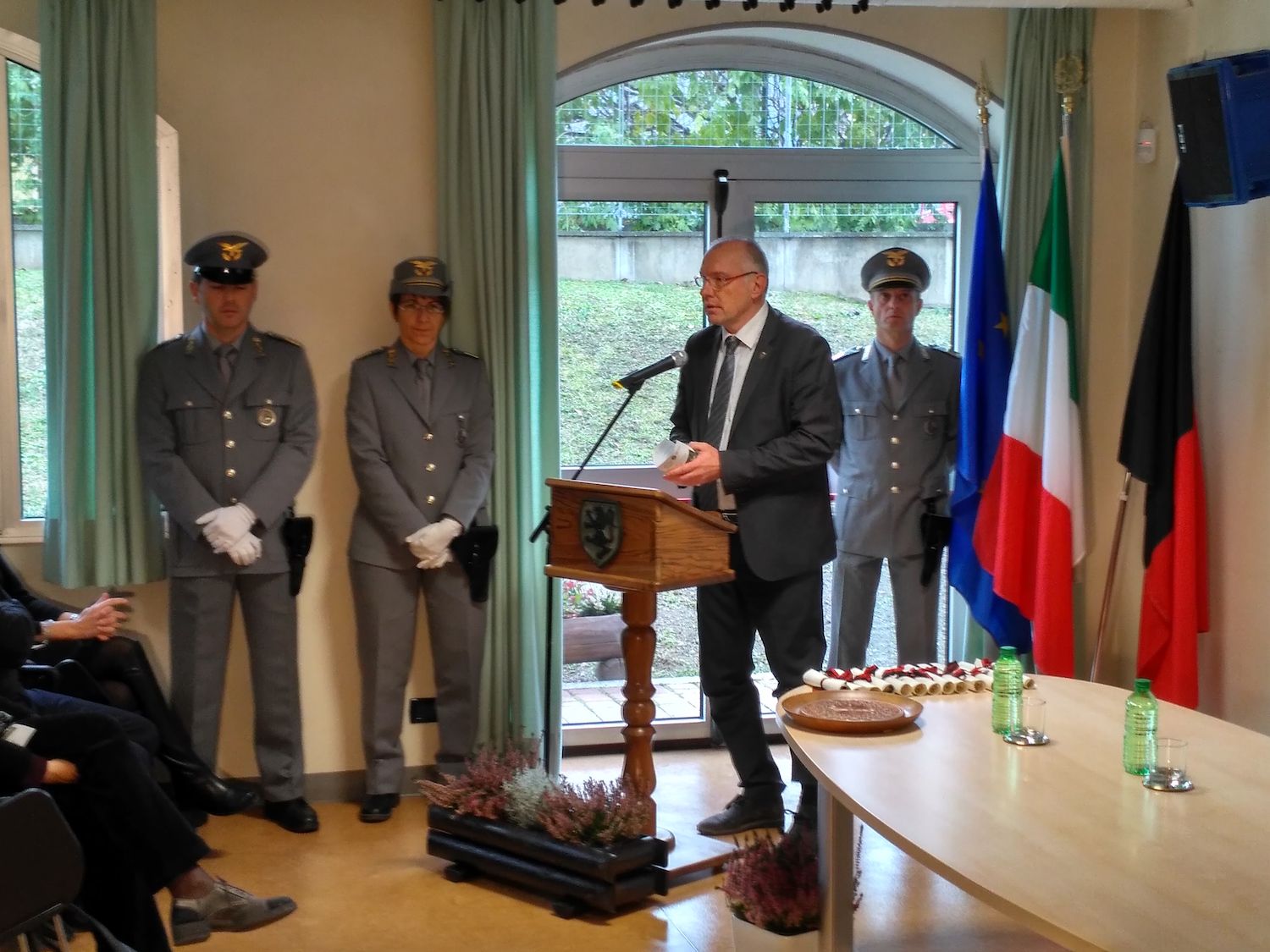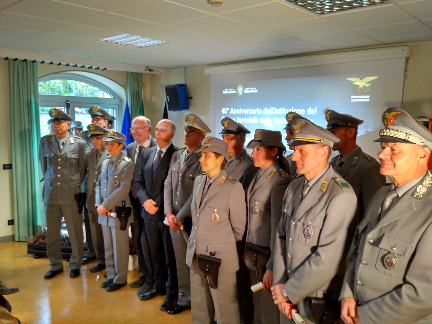 Intervenendo subito dopo il Comandante, l’assessore regionale all’agricoltura Renzo Testolin ha indicato nel corpo “uno dei simboli di cui la Valle d'Aosta può ancora vantarsi, al contrario del resto d'Italia dove le funzioni sono state assorbite" per lo più "dall'Arma dei carabinieri". Se così è, lo si deve, ha aggiunto l’assessore, ”all'intervento sia dell'Amministrazione regionale sia dei parlamentari valdostani che, con i colleghi delle altre regioni a statuto speciale, hanno permesso di promuovere iniziative per sostenere l'esistenza e la possibilità di avere sul nostro territorio” il Corpo il cui cammino è iniziato nel 1946.