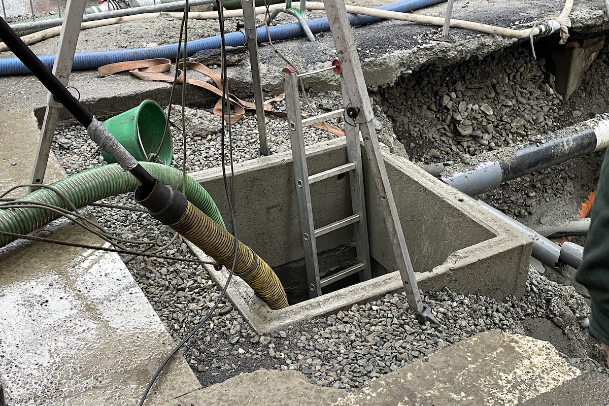 Il lavoro è ancora molto, dice il dirigente Sev: “Non siamo ancora riusciti a tirare fuori tutto materiale. Siamo quasi sicuri che il problema sia a monte della condotta. Abbiamo posizionato un bypass per la Mère de Rives e un per l’acquedotto. Per la fognatura non ancora, abbiamo attivato però una pompa esterna che scarica da un pozzetto collocato a monte e uno a valle”.