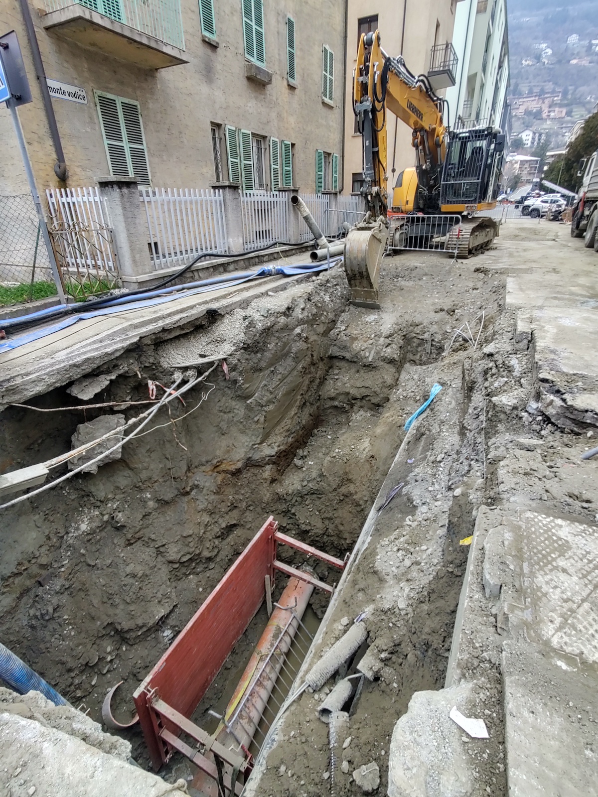 Lì sotto, si incrociano una serie di sottoservizi, che rendono l’intervento complesso: “La fognatura si trova a cinque metri di profondità, c’è poi la rete del metano ad 80 centimetri, la Mère des rives, la fibra e l’acquedotto. Ora vedremo con la videoispezione. Essendo più il problema più esteso rispetto al buco da 2×2 metri dobbiamo prendere precauzioni ancora maggiori. Prima di riaprire dobbiamo risolvere la cosa. Ed è un problema grosso che gli Uffici affronteranno con la solita attenzione”.