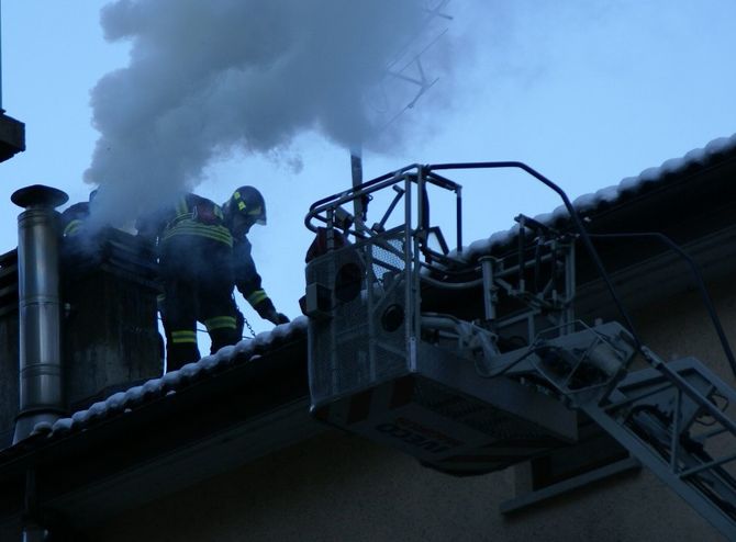Le fiamme partite dalla canna fumaria di una stufa a legna posizionata al piano terra si sono levate in aria provocando una densa coltre di fumo nera.