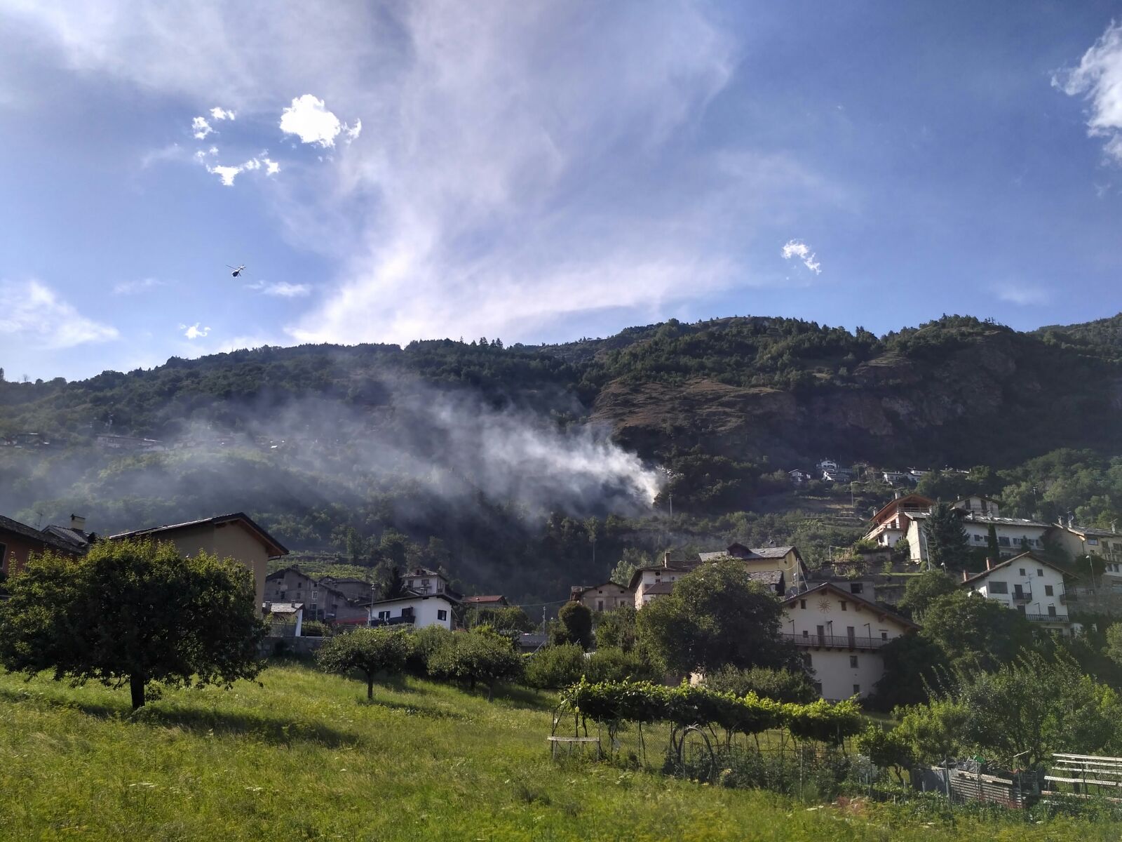 Incendio boschivo sulla collina di Sarre, fra le frazioni Betende e Pléod. Sul posto stanno intervenendo il Nucleo Antincendio Boschivo del Corpo Forestale della Valle d'Aosta e i Vigili del Fuoco oltre ad un elicottero.