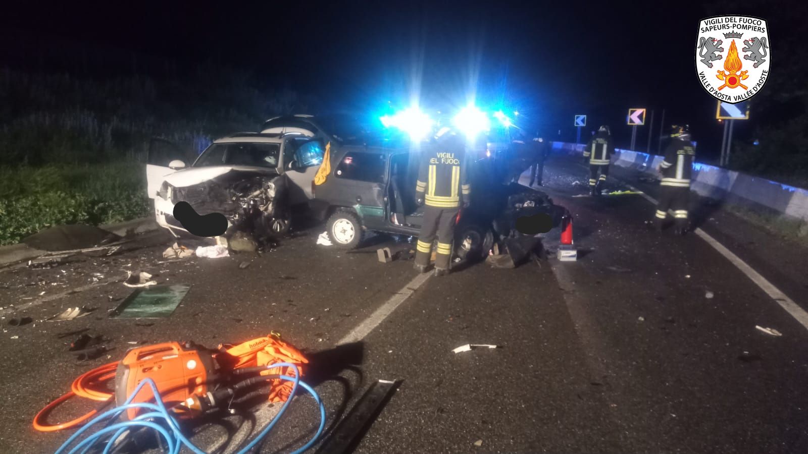 Brutto incidente stradale a Sarre, nella notte di ieri, intorno alle 2.40, sulla statale 26, che ha visto coinvolte due automobili. Lo scontro tra le due vetture è stato violento e uno dei conducenti è stato estratto dalle lamiere dalla squadra dei Vigili del Fuoco, intervenuta sul posto con il gruppo taglio, insieme ai medici del 118, i Carabinieri, la Polizia e il personale dell’Anas. In tutto sono 6 le persone che hanno avuto bisogno di cure e che sono state prese in carico dal Pronto Soccorso.