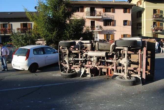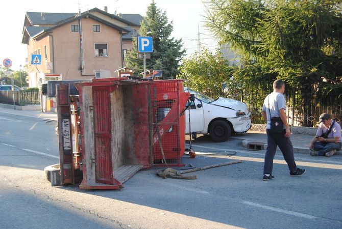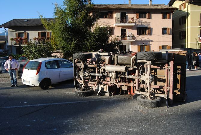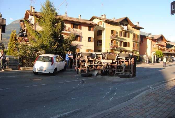 Spettacolare incidente avvenuto alle 17,50 circa a Plan Félinaz, frazione di Charvensod, fortunatamente senza conseguenze per i due conducenti coinvolti. Un vecchio furgoncino Iveco ed una Fiat Punto bianca si sono scontrati in mezzo al paese, con la Punto che ha finito la sua corsa contro un’inferriata e il camioncino che si è rovesciato sulla sua fiancata destra. Ancora da definire la dinamica dell’incidente mentre i conducenti delle due autovetture, visitati dall’ambulanza prontamente giunta sul posto, sono rimasti illesi.