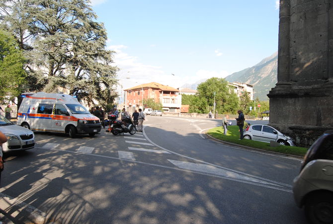 Scontro fra un’auto e una moto intorno alle 18.30 di oggi nella rotonda dell’Arco d’Augusto. Secondo le prime informazioni una peugeot 107, condotta da una donna, dopo essersi scontrata con una moto condotta da un 33enne valdostano è entrata dentro la rotonda finendo la sua corsa contro il monumento storico.