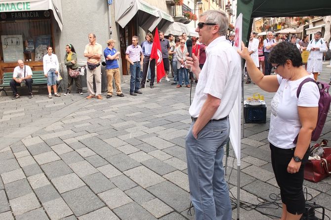 I dipendenti sono scesi in piazza per protestare contro la vendita da parte di Telecom della Olivetti I-Jet di Arnad. Futuro “nero” per 162 lavoratori, e il rischio di perdere un patrimonio tecnologico e professionale di alto profilo.