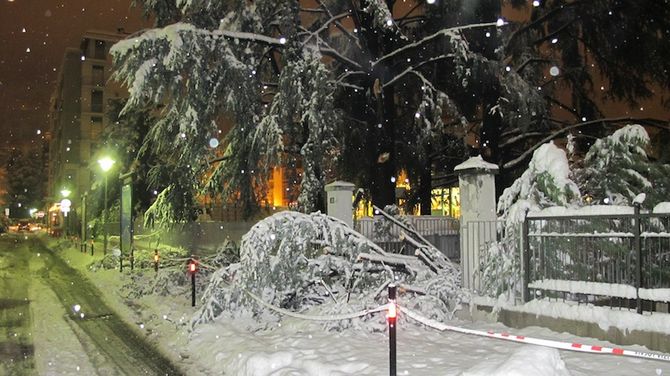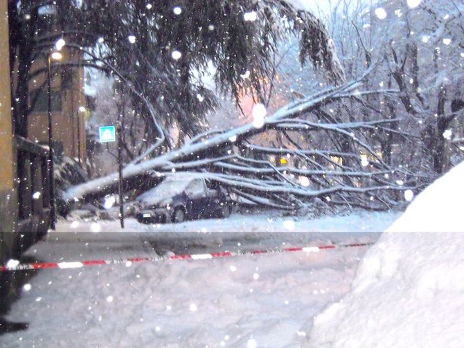 La grande nevicata ha iniziato far danni. In Corso Battaglione ad Aosta, questo pomeriggio intorno alle 16 un albero è crollato sotto il peso della neve schiacciando una macchina, parcheggiata senza passeggeri a bordo, e distruggendo parte del muretto che costeggia un edifico. La zona è stata chiusa al traffico dai carabinieri.