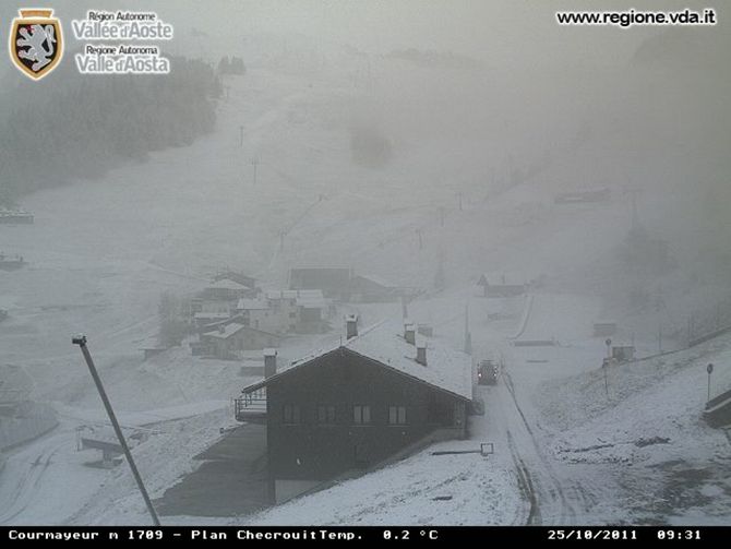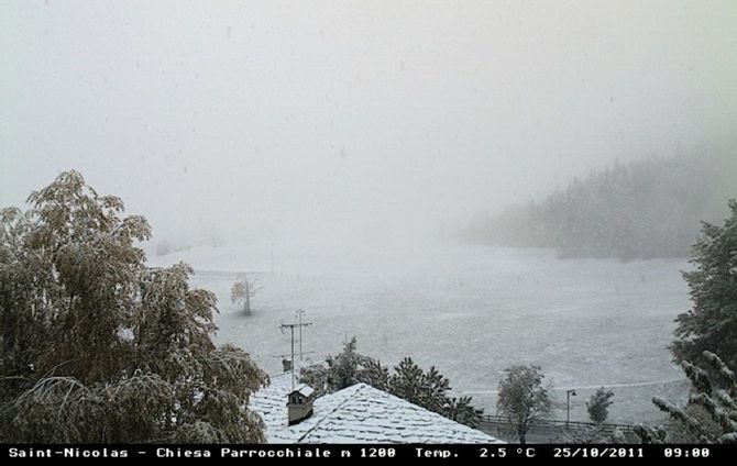 Non si è trattata della solita “spruzzata” autunnale, con la quota neve tra i 1200 e i 1500 metri come previsto (si attesta tra i 600 e i 700 metri): in mattinata, infatti, un po’ neve "bagnata" è scesa anche ad Aosta, senza comunque “attaccare".
