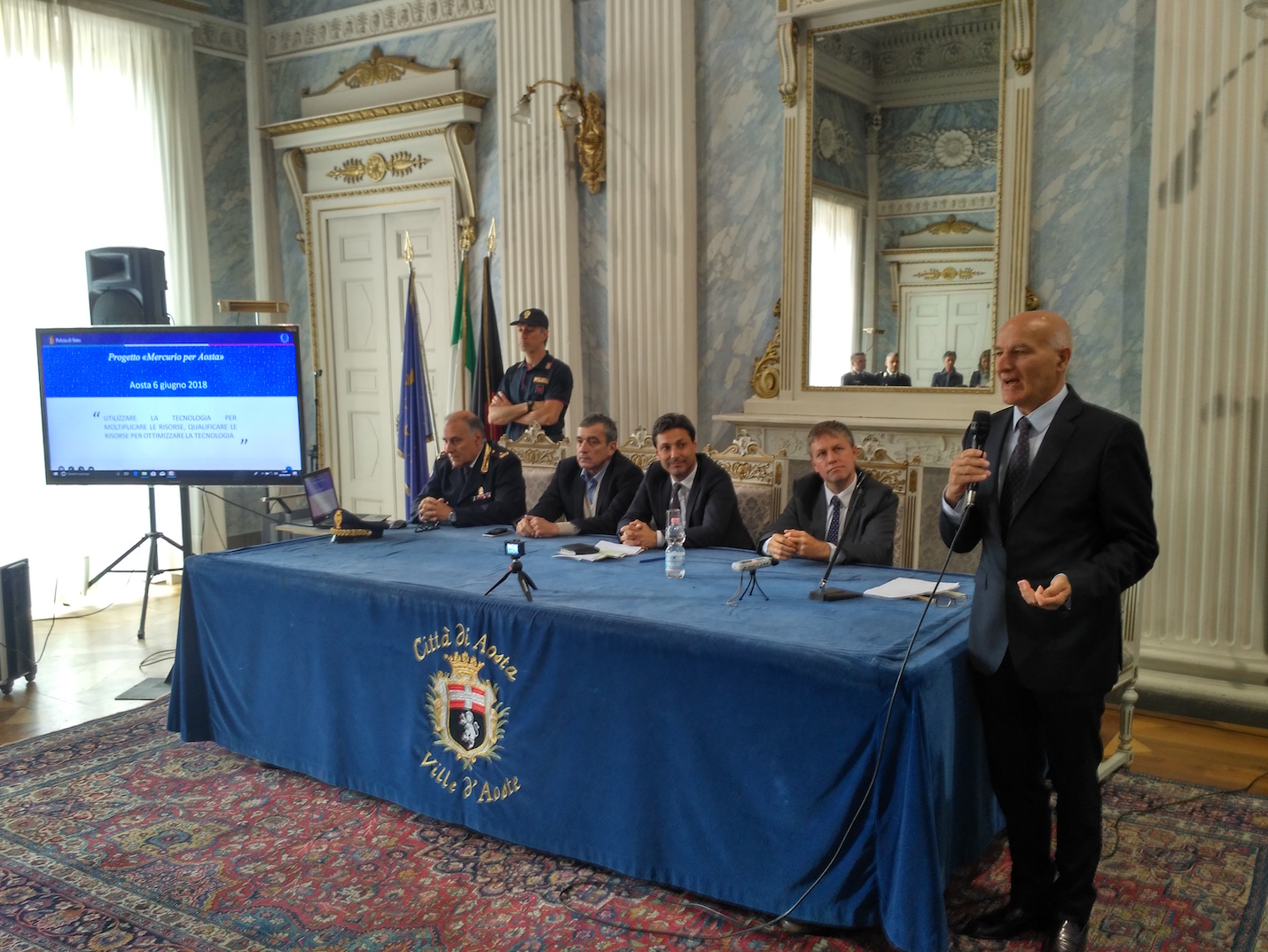 In Valle d’Aosta, il sistema è entrato in servizio su tre auto della Questura, una della Stradale ed una del Reparto Prevenzione Crimine sovente in Valle per i controlli straordinari del territorio. “Non ci possiamo crogiolare sui dati dei delitti in diminuzione. Il nostro obiettivo – ha sottolineato Vallone – è evitare la consumazione di reati. Mercurio nasce in questo contesto”. La maggior rapidità delle procedure (in particolare, grazie all’invio online delle relazioni di servizio, che una volta venivano compilate rientrando in ufficio a fine orario) permetterà di recuperare almeno venti minuti a turno per equipaggio.