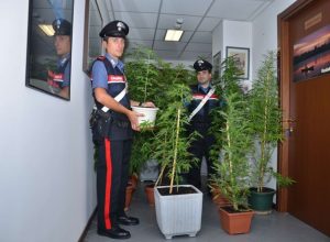 I carabinieri hanno sequestrato 16 piante di cannabis indica con foglie ed inflorescenze, di altezza variabile tra i 30 ed i 190 cm; 2 bilancini elettronici di precisione e circa 390 semi di canapa indiana.