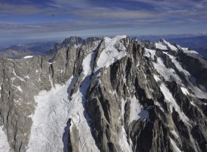 "La maggior parte del volume di ghiaccio - si legge in una nota - ha percorso il tratto di versante sottostante al ghiacciaio sospeso, attraversando la parte inferiore del Couloir Whymper ed arrestandosi a valle del Rocher de Reposoir".