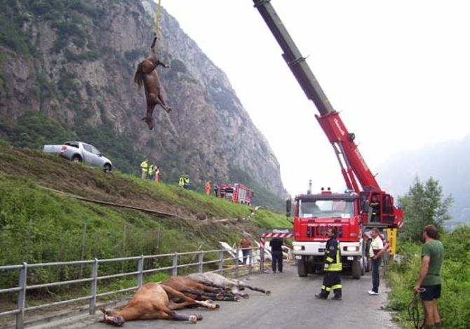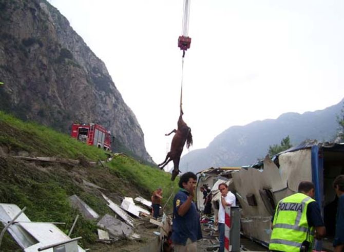 Il Tir, proveniente da Novara e diretto a Lione, trasportava tredici cavalli, tutti di razza, che dovevano affrontare alcune gare di polo e dovevano rimanere in Francia circa un mese. Dieci animali sono morti, mentre tre si sono salvati. Immediato l’intervento dei medici del 118 e dell’elicottero della protezione civile, per portare i feriti in ospedale.