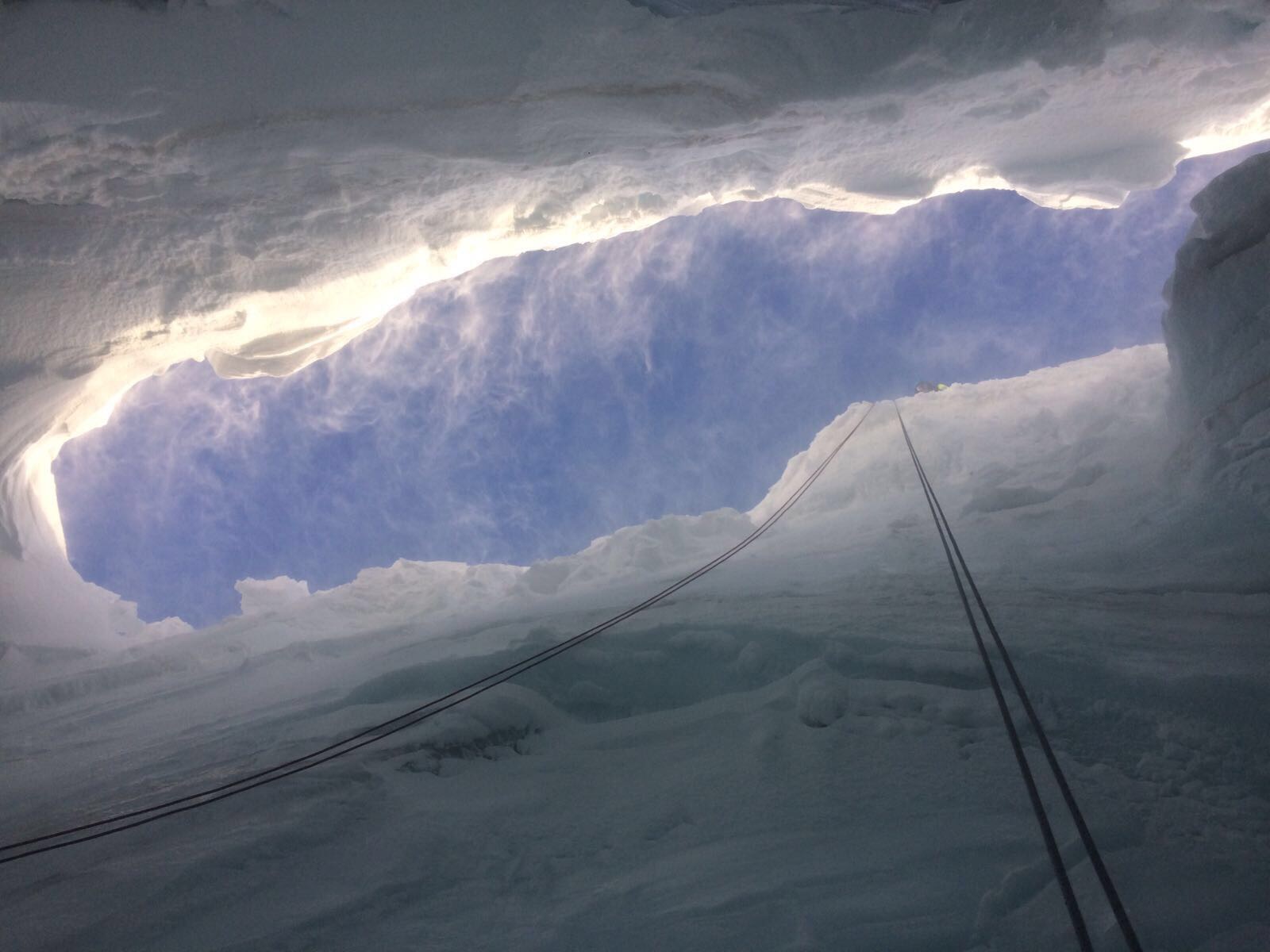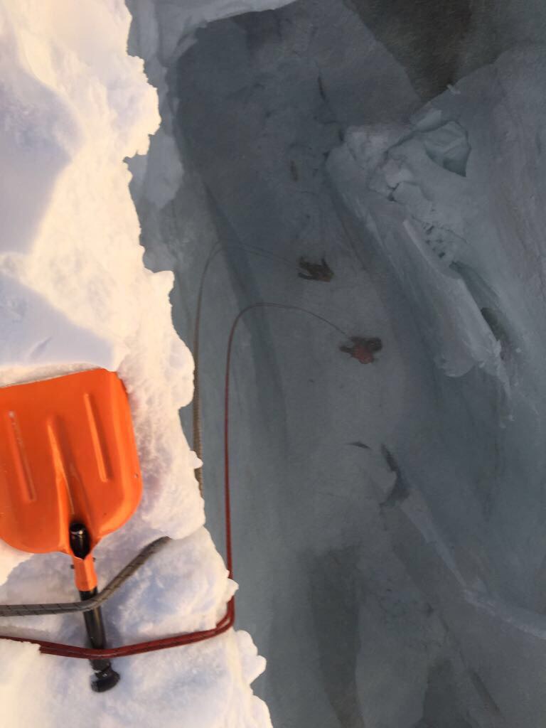 Operazioni di ricerca dello scialpinista disperso in un crepaccio