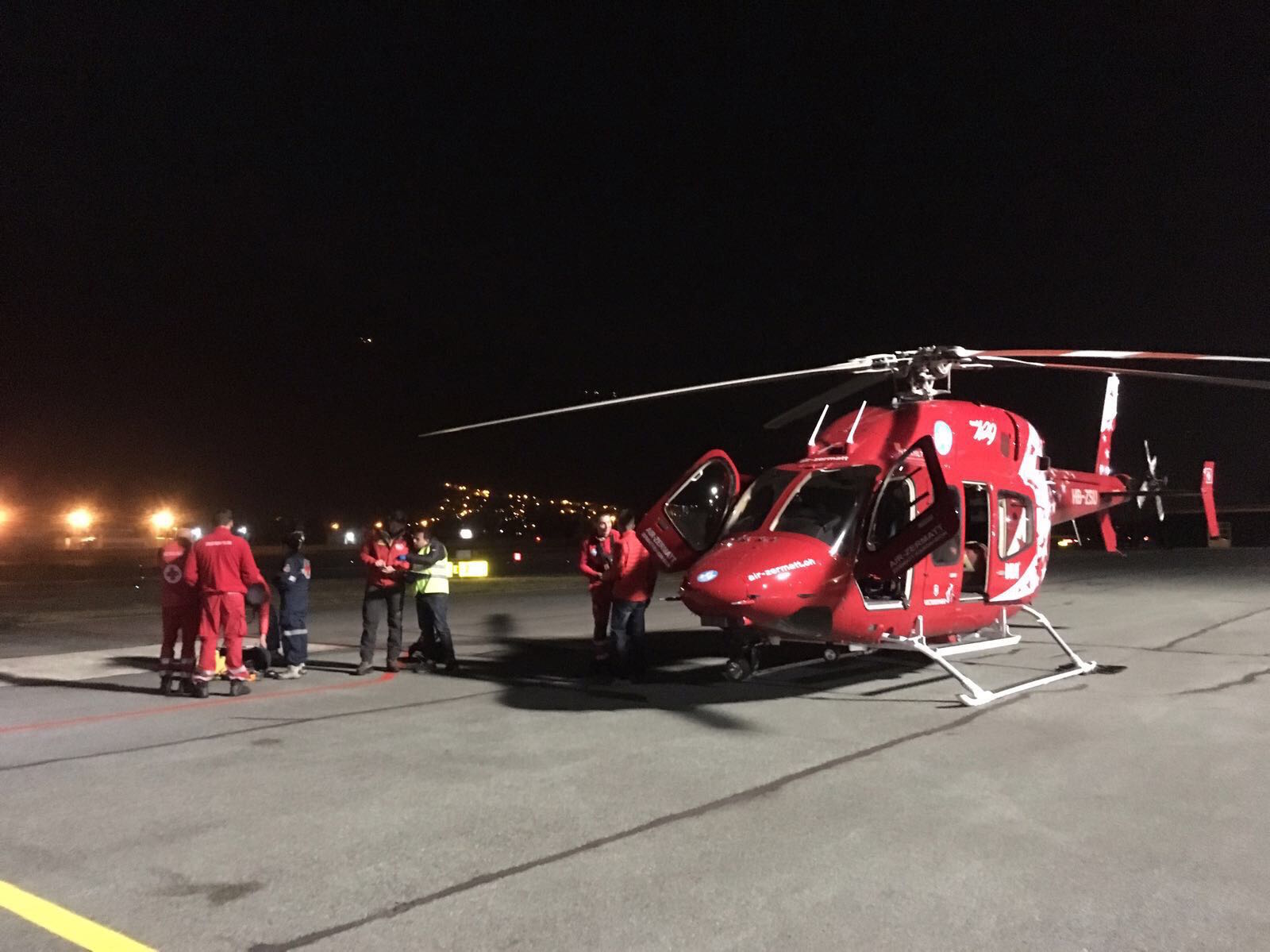Il “Bell 429” svizzero è arrivato al “Corrado Gex”, sorvolando la valle del Gran San Bernardo, poco dopo le 21. All’aeroporto valdostano, rimasto aperto per l’occasione, con l’impianto di illuminazione acceso, ha caricato a bordo un tecnico del Soccorso Alpino Valdostano, risorsa che ha contribuito alla missione con l’opportuna conoscenza del territorio. Quindi il volo verso la montagna, reso più complicato dall’oscurità e dalla leggera nuvolosità di stanotte.