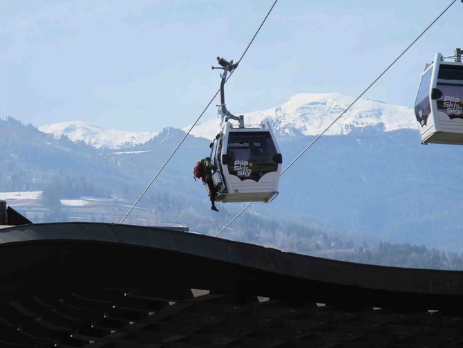 Una spettacolare operazione di evacuazione è stata condotta questa mattina alla cabinovia che collega la città di Aosta a Pila. A causa di un guasto al motore avvenuto verso le 7.40, subito dopo il consueto giro di prova che viene fatto fare all’impianto all’avvio, la cabinovia si è bloccata con 25persone a bordo: 24 dipendenti della società che gestisce gli impianti di risalita e 1 maestro di sci.