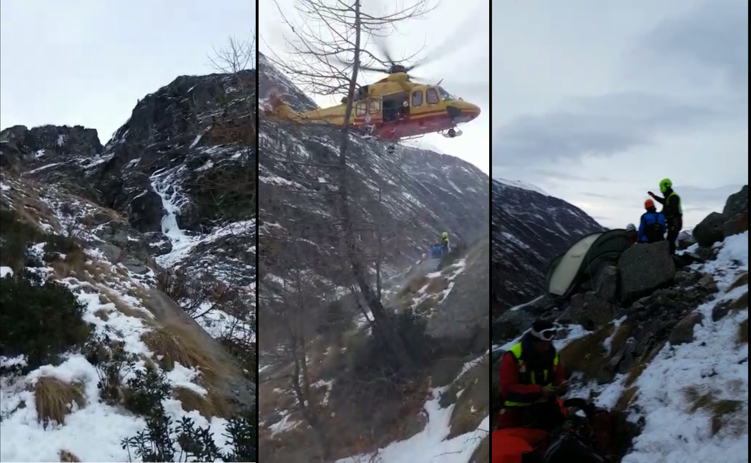 Così, le guide hanno valutato che il recupero dell’alpinista non potesse proseguire in sicurezza e hanno deciso di fermarsi, per la notte, lungo la cascata. Montata una tenda, vi hanno bivaccato assieme all’infortunata e ad un suo compagno di cordata. Stamattina, quando la luce del giorno ha consentito all’elicottero SA1 di alzarsi in volo, l’intervento si è concluso, portando a termine il recupero.