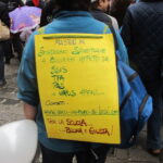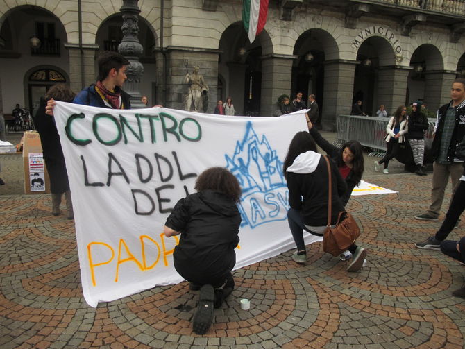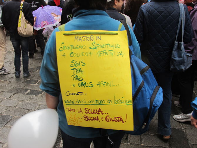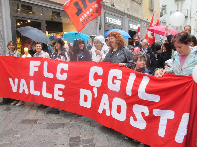 Tanti gli striscioni che ricordano le ragioni della protesta: la mancata condivisione della riforma, la questione dei dirigenti-sceriffi, l’incertezza sul futuro degli insegnanti della scuola dell’infanzia e sui precari in generale per i quali il disegno di legge prevede che chi ha superato i 36 mesi di lavoro a tempo determinato non venga assunto. Striscioni contro Renzi, che nei prossimi giorni dovrebbe arrivare in Valle d’Aosta per sostenere la candidatura a sindaco di Fulvio Centoz ma anche striscioni contro Augusto Rollandin (#gustestaisereno).