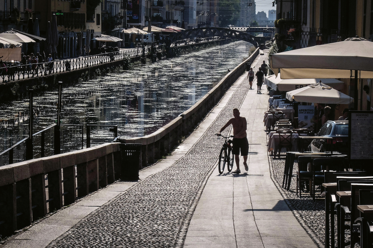 Matteo Corner, 12 agosto, Milano, Italia – La zona dei Navigli deserta nei giorni di caldo record nel capoluogo milanese
