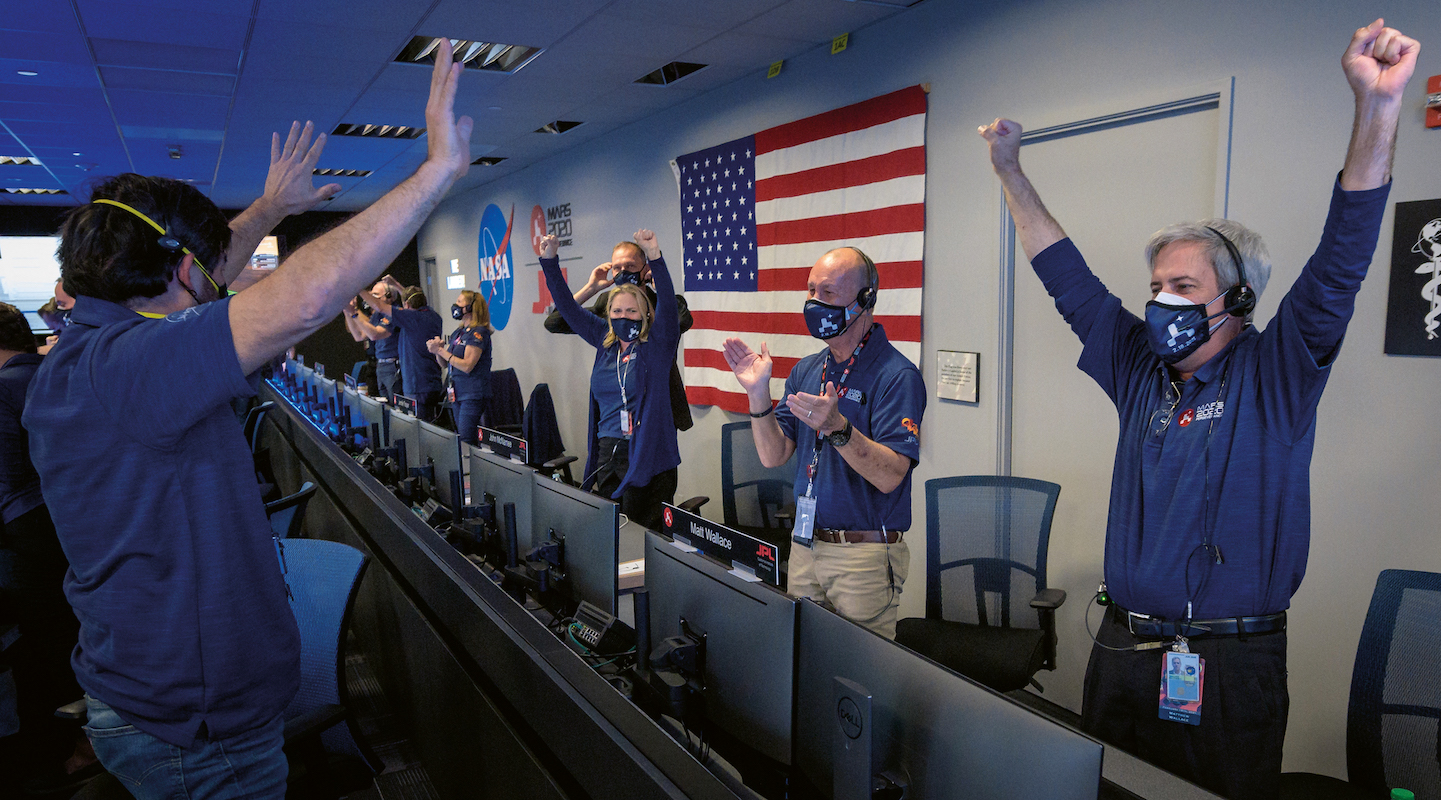 Bill Ingalls, 18 febbraio, Cape Canaveral, USA – La festa nella Mission control della NASA alla conferma dell’atterraggio del rover sul suolo marziano