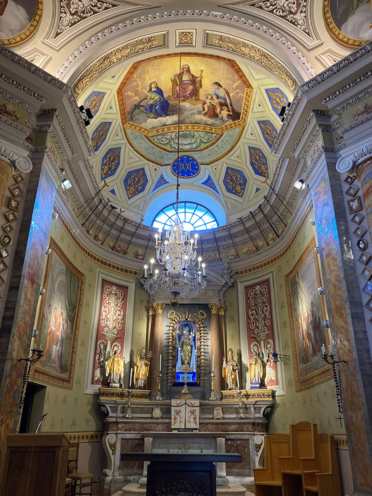 Nelle quindici nicchie del portico antistante l’edificio sacro sono invece affrescati i Misteri del Rosario. Accanto al santuario si potranno degustare e acquistare i prodotti del territorio, tra cui il Pan Ner appena sfornato.