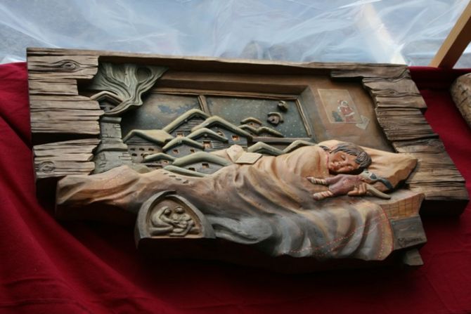 Il banco lo condivide con Manuela Miozzi, anch’essa allieva di Crestani. Le sue opere intitolate “Il risveglio” e “L’Attesa” sono già state esposte alla Foire d’été. “Vengo alla Fiera non per vendere ma per esporre: nonostante alcune richieste faccio molta fatica a staccarmi dalle mie produzioni”. La passione per il legno l’ha scoperta nel tempo: “a forza di venire alla fiera mi è venuta voglia di provare, credo che sia una passione che se uno ce l’ha prima o poi scopre dentro di se”.