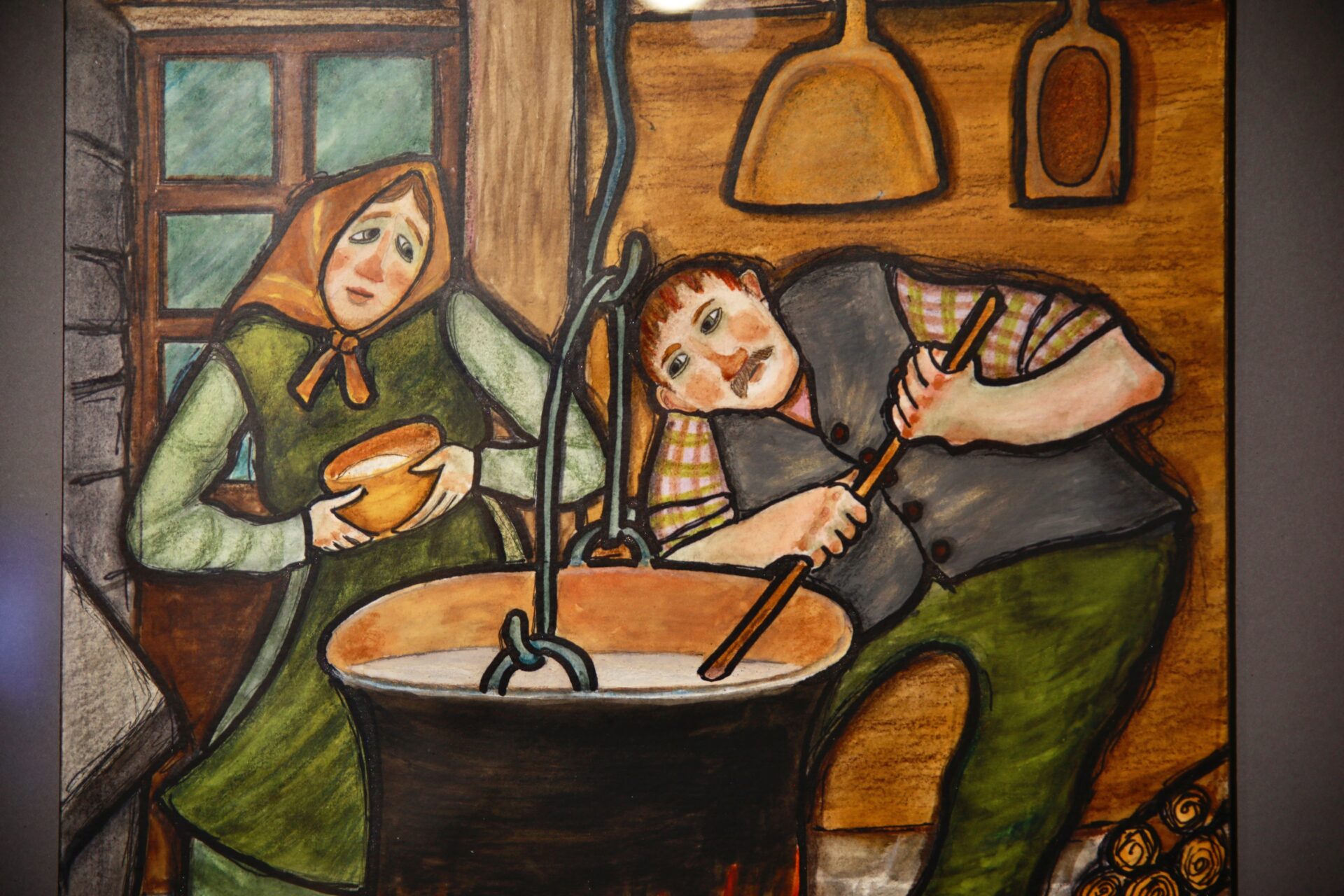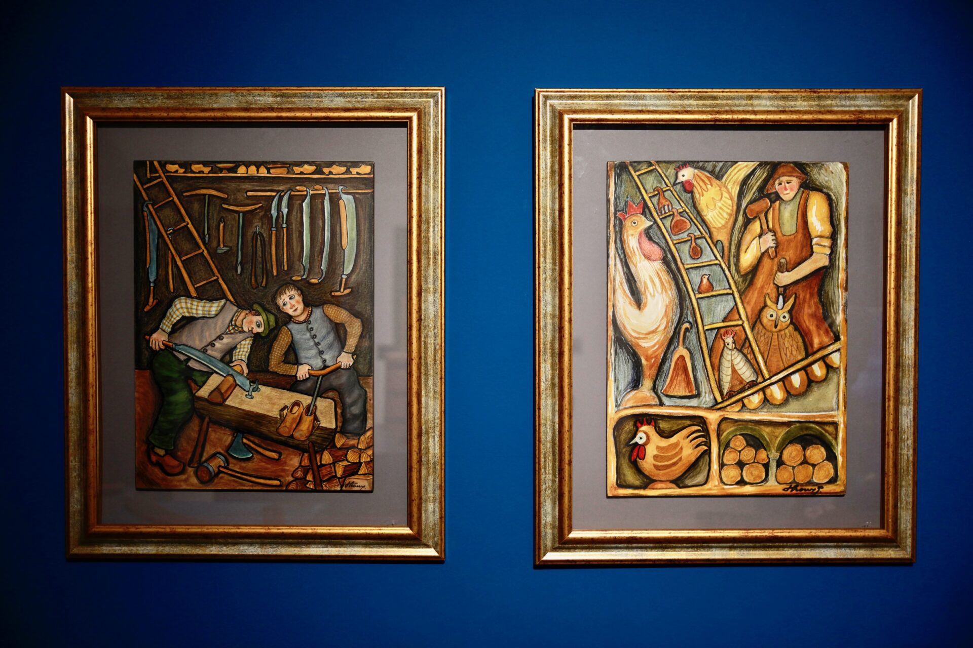 Non si tratta di buoni propositi caduti nel nulla. Dopo due anni di assenza, Thoux è tornato davvero in Fiera, ma l’ha fatto in modo diverso, adattando la sua arte alle contingenze fisiche in cui si trova. Così, nella mostra La Foire des savoir-faire, a cura del MAV (Museo dell’Artigianato Valdostano) – Artisanà, ospitata presso la saletta espositiva della Collegiata dei Santi Pietro e Orso di Aosta, si potranno ammirare anche gli esempi di un nuovo savoir-faire a cui Thoux si è dedicato negli ultimi tempi: la pittura. “Scolpire iniziava a darmi troppo dolore alle articolazioni, così ho deciso di produrre delle tavole illustrate. Già prima sapevo disegnare, perché è imprescindibile per realizzare le sculture. Poi sono stato il primo a colorare il legno: alla Fiera nei primi tempi ero molto criticato per questo, perché mi si diceva che i valdostani di una volta non lo coloravano. Io rispondevo che non era vero e che bastava andare in qualsiasi chiesa valdostana: non c’è un santo che non sia colorato”.