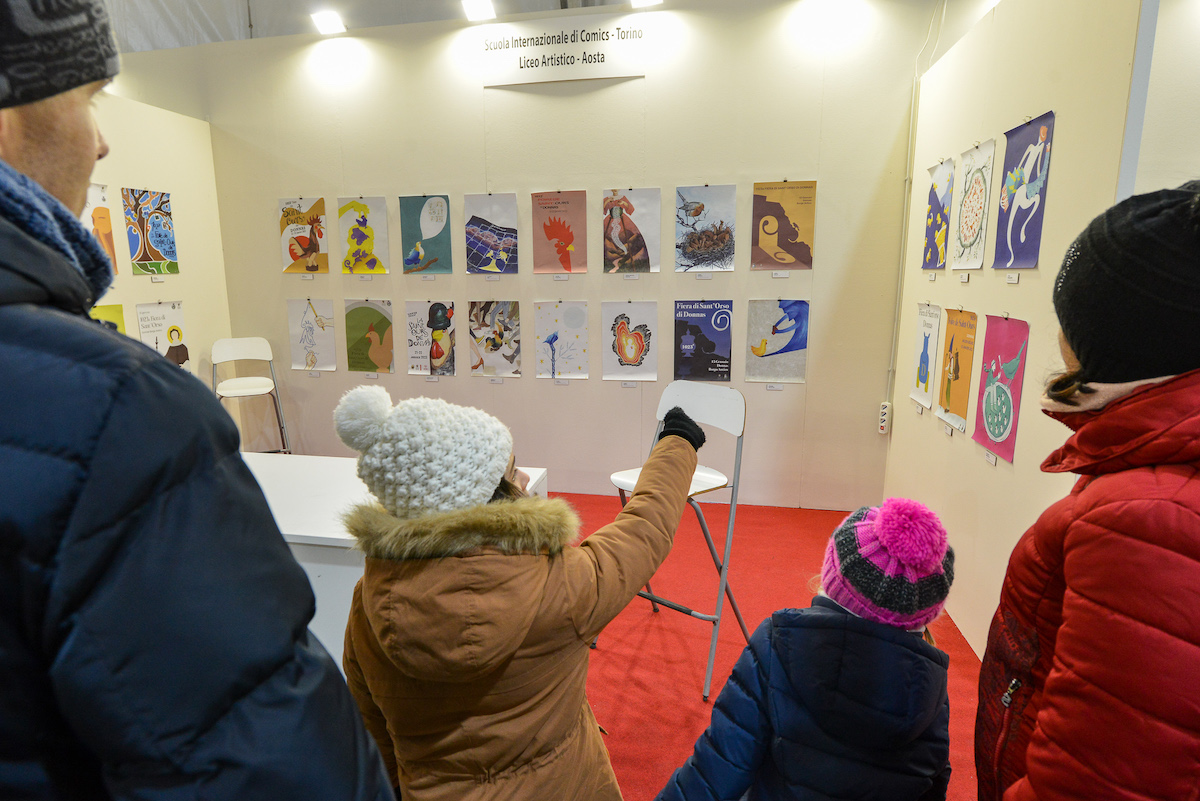 Si tratta di una novità legata alla realizzazione dei manifesti della Foire. Storicamente affidata ad artisti valdostani, attraverso un sistema di rotazione, quest’anno sono stati realizzati dallo studio grafico Seghesio Grivon di Aosta che ha proposto di coinvolgere due classi del Liceo Classico Artistico Musicale di Aosta e la Scuola Internazionale di Comics di Torino. Gli studenti hanno svolto un’accurata ricerca della storia, delle origini, delle evoluzioni e curiosità dei due eventi, costruendo immagini e selezionando, lezione dopo lezione, le strade grafiche da mantenere rispetto a quelle da accantonare, dialogando costantemente con il docente per svolgere al meglio questo delicato passaggio. Dalla selezione sono emerse due immagini: quella scelta per il manifesto della Fiera di Donnas di Miklos Ioana Ancuta e quella del manifesto ufficiale della 1023ª Foire de Saint-Ours di Davide Arena.
