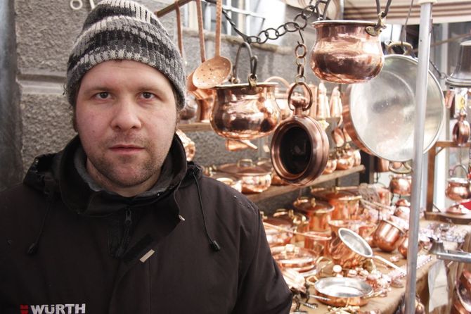 Pareri discordanti, invece, tra gli espositori dell’altro artigianato, secondo le zone e delle tipologie di oggetti proposti. “A noi è andata piuttosto bene – hanno commentato Piergiorgio e Nicole Voulaz, padre e figlia impegnati nella vendita di accessori in pelle e cuoio – anche se la gente non spende più di 10-20 euro, comprando soprattutto portafogli e pochette. Con le borse, invece, facciamo più fatica”. Chantal Godio, qualche banchetto più in là, poco prima di mezzogiorno aveva quasi esaurito i pezzi realizzati in ceramica per la Fiera. “Mucche e galli sono andati via alla velocità della luce – ha spiegato la madre, piazzata a presidio delle opere”. A pochi metri di distanza, l’umore di Francesco Mandalari, artigiano del vetro, era un po’ diverso. “Va molto peggio dello scorso anno: non so se è la posizione, visto che mi hanno spostato da Via Croce di Città a Sant’Orso, o se è per la crisi, ma non sono soddisfatto”. Stessa musica per Massimiliano Guglielmetti, unico espositore di oggetti in rame insieme al fratello, che lamenta anch’egli “un 50% in meno di vendite rispetto al 2013”.