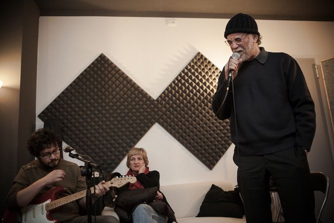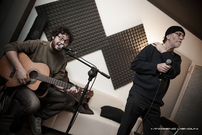 Alberto Visconti, chitarra in mano, accompagna le canzoni di Francesco, i due si scambiano sguardi, il brano scorre veloce, poi l’ultimo tocco di bacchetta sulla batteria, l’ultimo accordo, l’ultima nota, una sospensione, lo stop del pezzo e un solo commento “buono”. Tutti sono soddisfatti con un entusiasmo trattenuto che si legge negli sguardi, nei sorrisi, in quel inclinare la testa verso il basso quasi a dire “E’ tutto vero, ci siamo”. E’ la prima prova che fanno tutti insieme dopo che L’Orage ha inciso gli arrangiamenti da sottoporre a De Gregori, che con piacere ha prestato il proprio repertorio ai valdostani vincitori assoluti di Musicultura 2012 affinché lo rimodellassero.