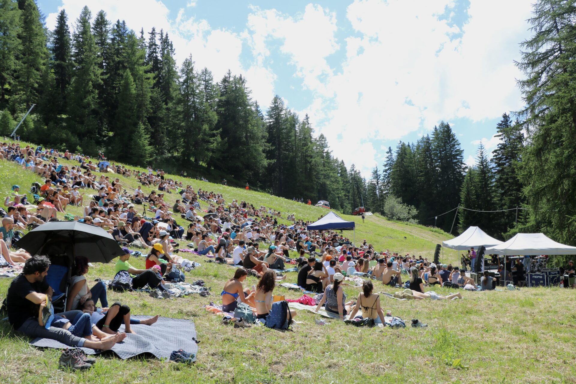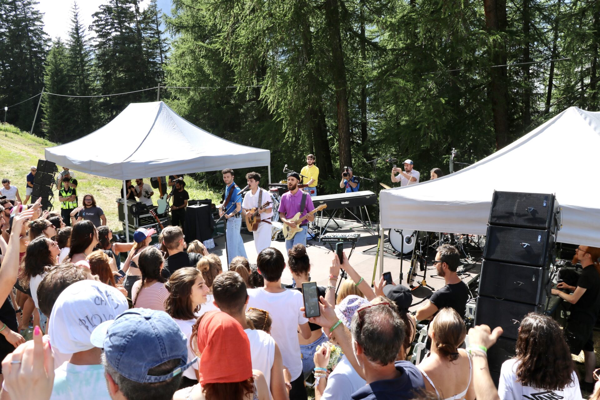 In tanti ieri pomeriggio sono arrivati in Val Vény per il secondo appuntamento di Musicastelle. Protagonista del concerto il giovane cantautore romano Fulminacci che, sotto un caldissimo sole, con la sua energia e il suo travolgente entusiasmo ha fatto cantare e ballare tutto il pubblico di Courmayeur per più di un’ora.