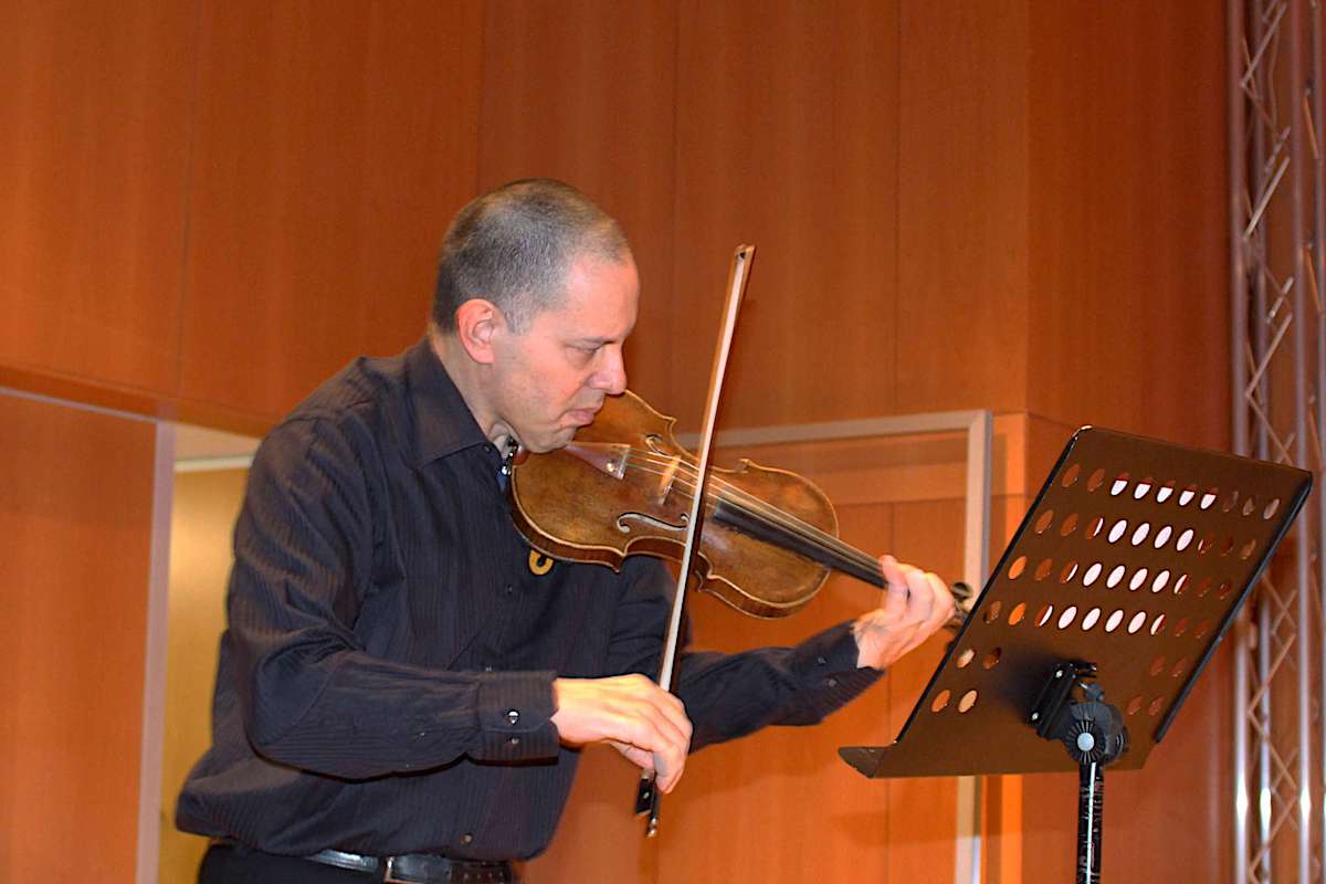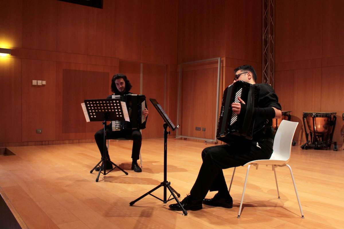 Sul palco i docenti Fabrizio Pavone (violino) ed Ezio Ghibaudo (fisarmonica) hanno eseguito il tema della colonna del film di Steven Spielberg “Schindler’s List”, del compositore John Williams, seguito – nell’esibizione di Ghibaudo e dello studente Edoardo Milleret – da una danza balcanica di origine popolare.