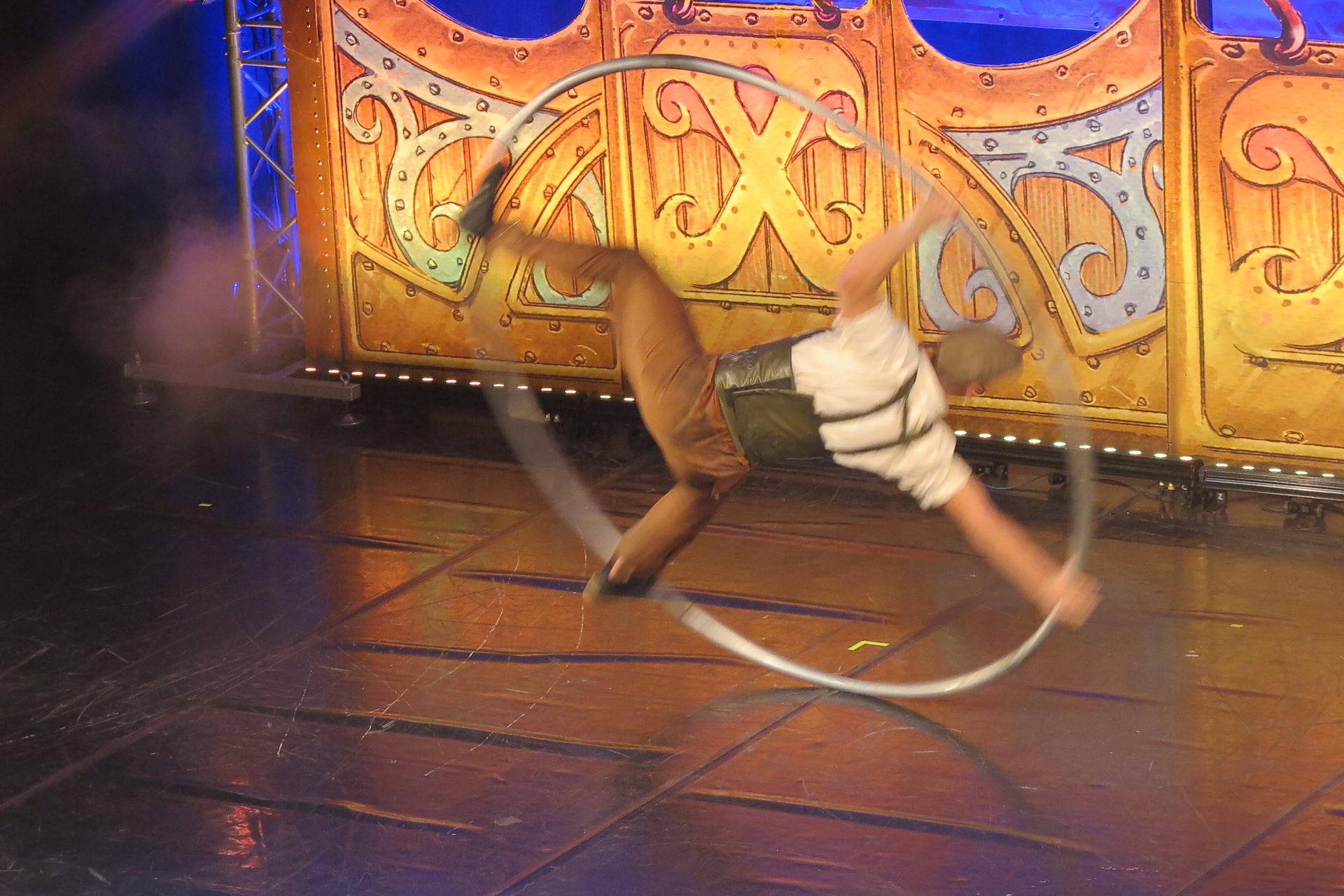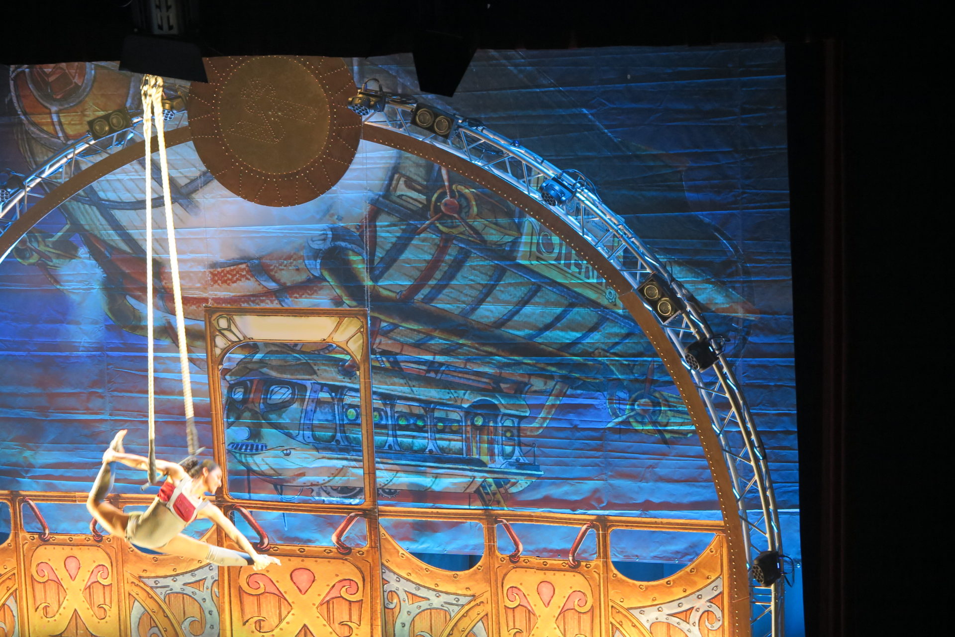 Corde, cerchi e trapezi. L’eleganza della danza e la dinamicità della ginnastica confluiscono in coreografie acrobatiche accompagnate in sottofondo dalle note musicali della colonna sonora del Maestro Ruggiero Mascellino. Colpi di scena ed effetti speciali arricchiscono le avventure volanti dei Sonics, in grado di far viaggiare, almeno con la mente, anche il pubblico.
