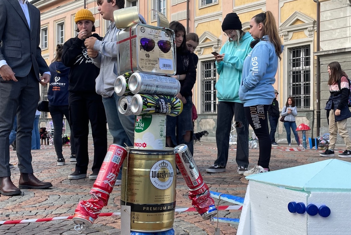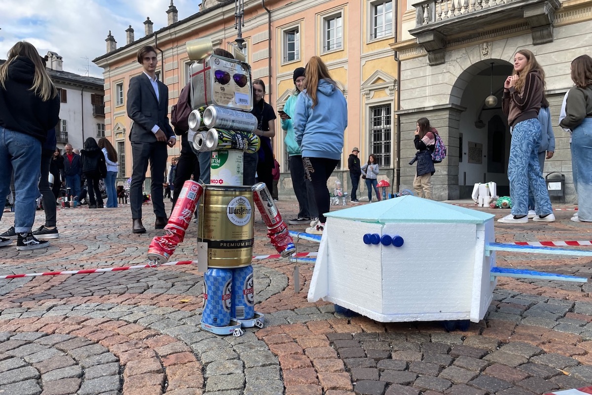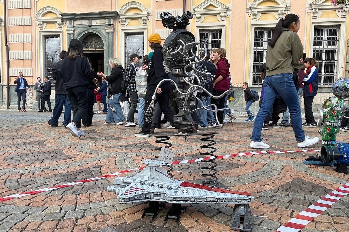 Dopo i dinosauri dello scorso anno, ora ci si proietta in avanti, verso la fantascienza, ma con un occhio al presente, dato che le opere assemblate dagli studenti avevano un unico “vincolo”: l’utilizzo di materiali di recupero per creare extraterrestri e astronavi “ecologiche”.