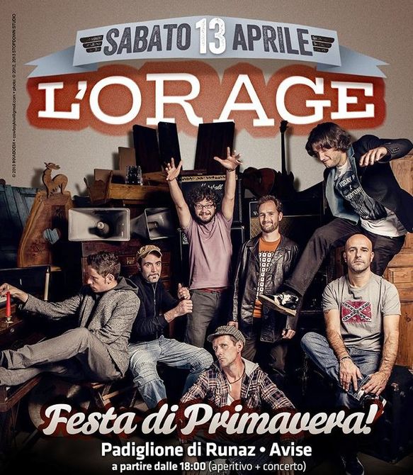 La festa comincerà alle ore 18 con un concerto – aperitivo ad opera dei Nandha Blues Band, cui farà seguito la cena in loco, a prenotazione obbligatoria sul profilo Facebook de l’Orage, con accompagnamento musicale raggae e a seguire concerto con gli Old Molly Moonshine, Ricky Mantelli "the insect dj", Orage e a chiudere Dj Radar after show...Gli Oragesuoneranno i loro brani e tutte le novità tra cui i brani registrati in occasione del concerto con Francesco De Gregori. Per l’occasione e per ricordare le emozioni dello scorso mese di febbraio 2013 al Palais di Saint-Vincent, nel corso della serata saranno proiettate le foto scattate da Moreno Vignolini durante il concerto e le prove. L’entrata al concerto ha un costo di 10 euro, non comprensivi della cena (12 euro).