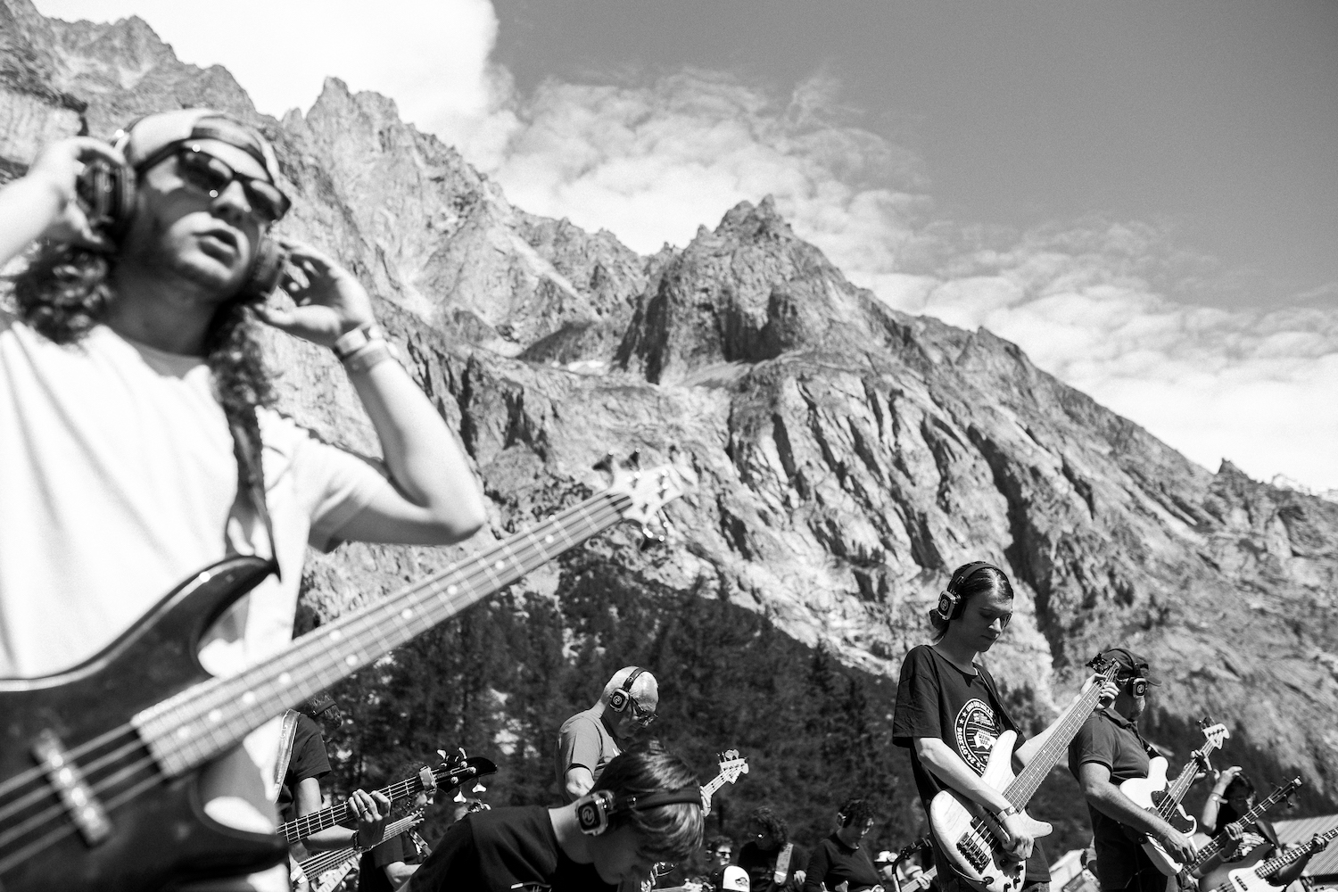 Prima giornata dai grandi numeri per Rockin’ 1000, la grande carovana del rock approdata ieri ai piedi del Monte Bianco. Il botteghino fa segnare 3300 spettatori paganti, 200 accreditati, per un totale di 1100 musicisti presenti e oltre 200 addetti ai lavori.