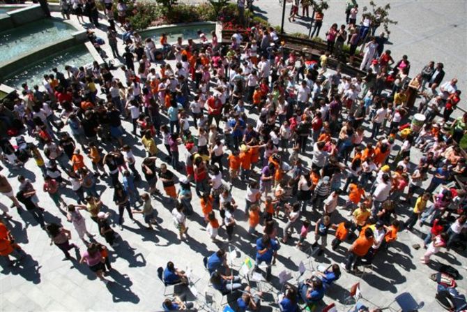 Nel pomeriggio, dalle 13.30, il paese si è trasformato nel teatro naturale delle danze, dei canti ed delle esecuzioni strumentale. Tutti si sono poi ritrovati nella piazza municipale, Piazza Gossweiler, dove la Banda giovanile della Filarmonica alpina di Hône ha eseguito alcune marce ed ha accompagnato il brano di chiusura "Lo campagnar" cantato dai 500 allievi.