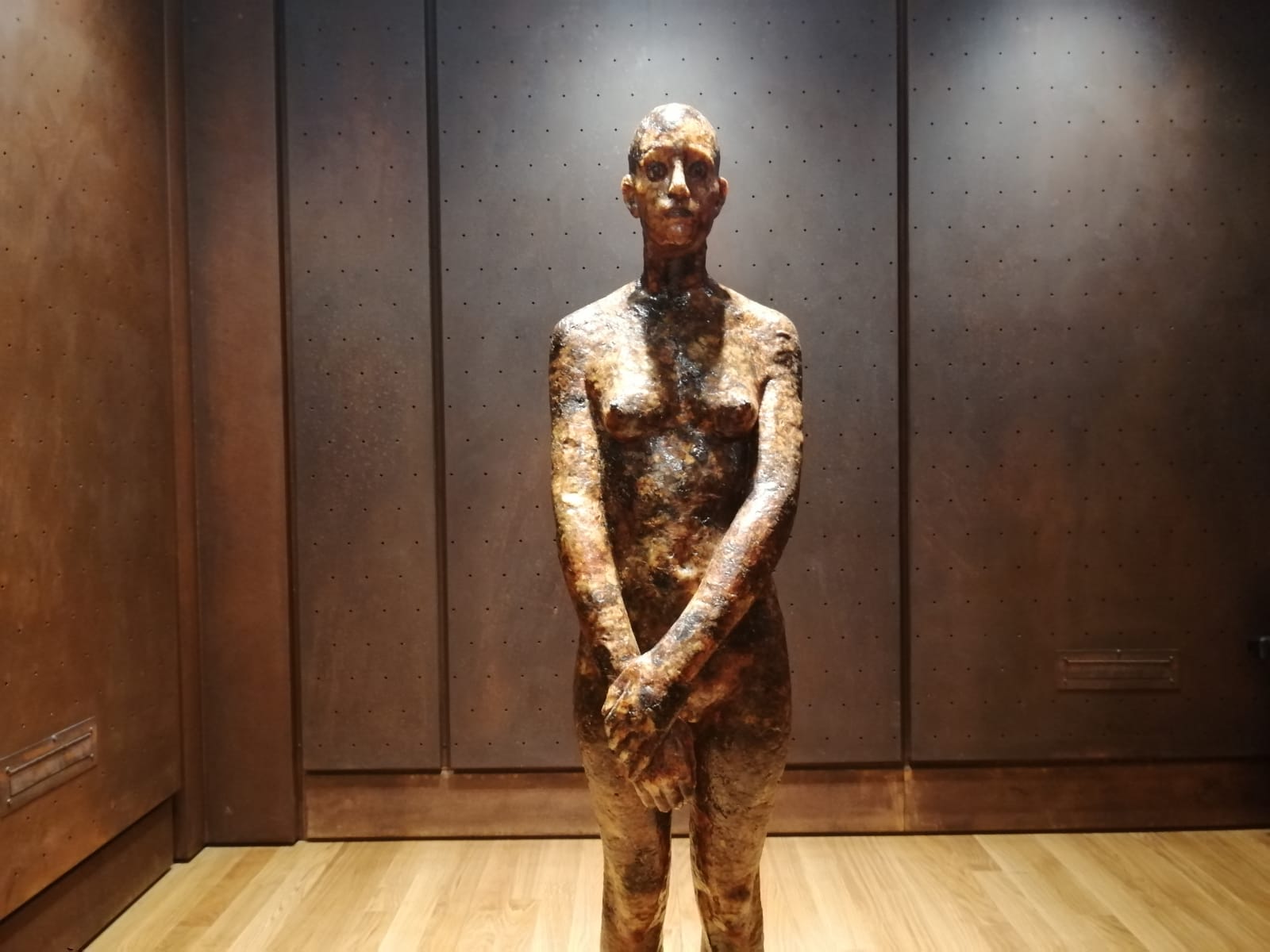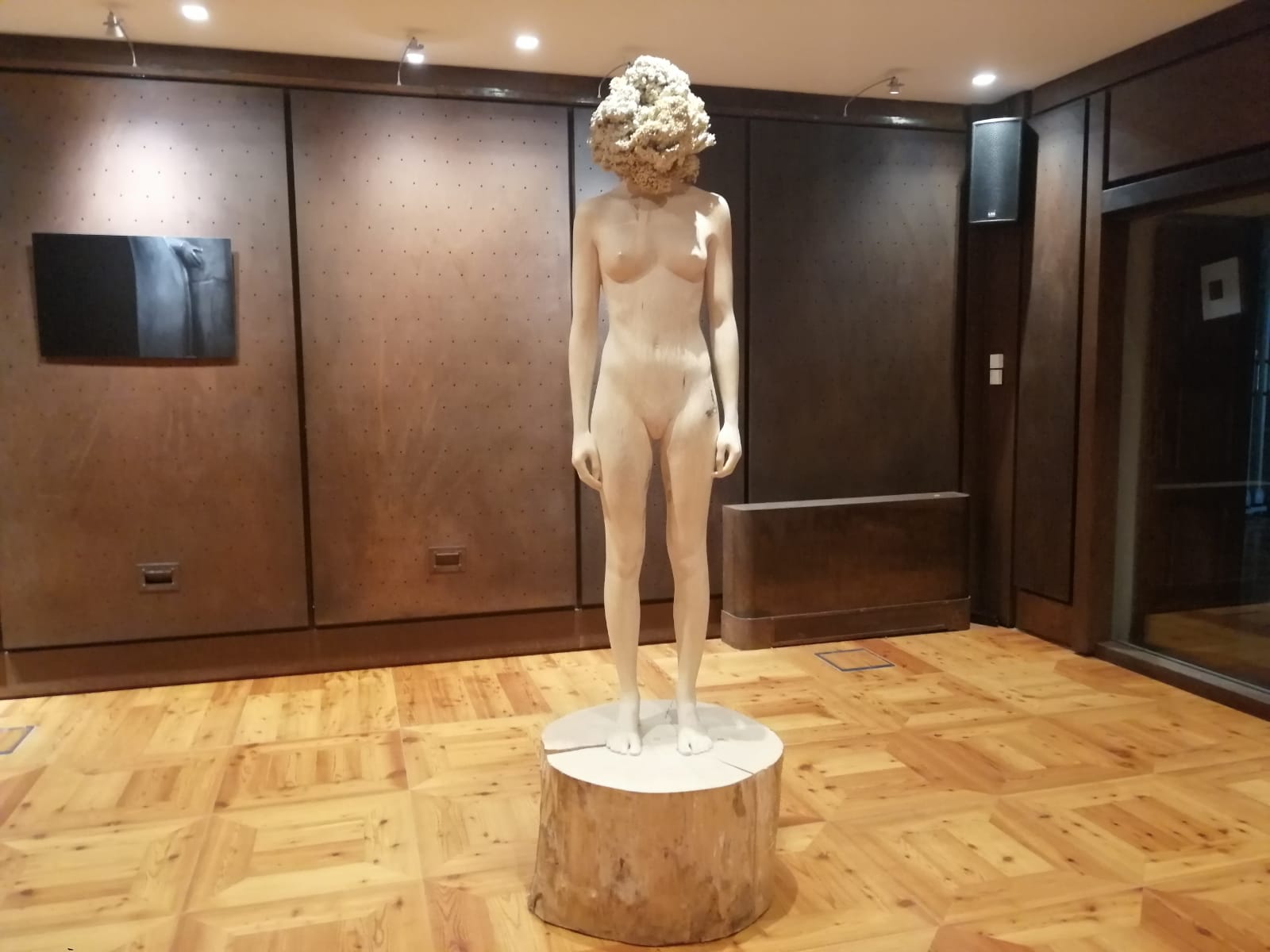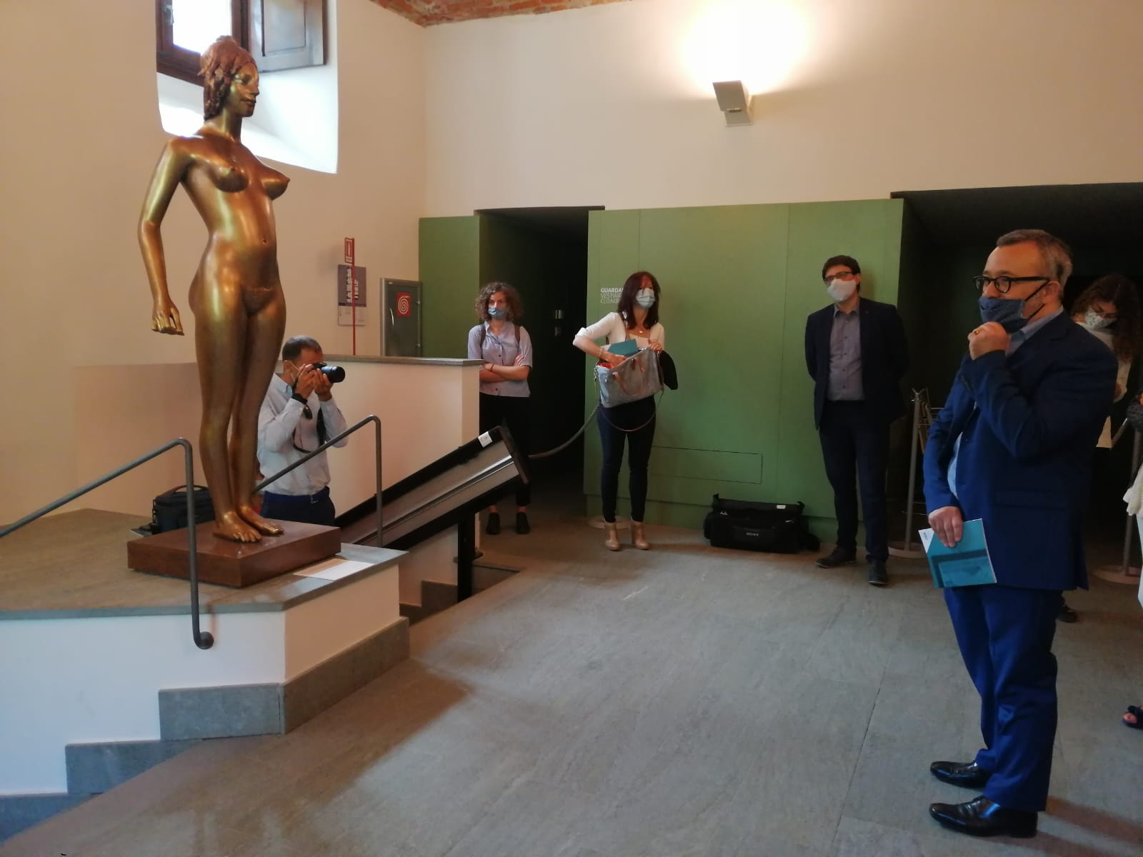 La prima opera che si incontra entrando nel castello è il Nudo Femminile di Giuliano Vangi. La figura, un bronzo dorato alto quasi 2 metri, accoglie e saluta il visitatore richiamando il mito di Pigmalione e proprio come accadde al Re di Cipro anche il visitatore non potrà fare a meno di rimanere affascinato da questa mostra che, con coraggio, traccia la strada per una ripresa possibile e più che mai necessaria.