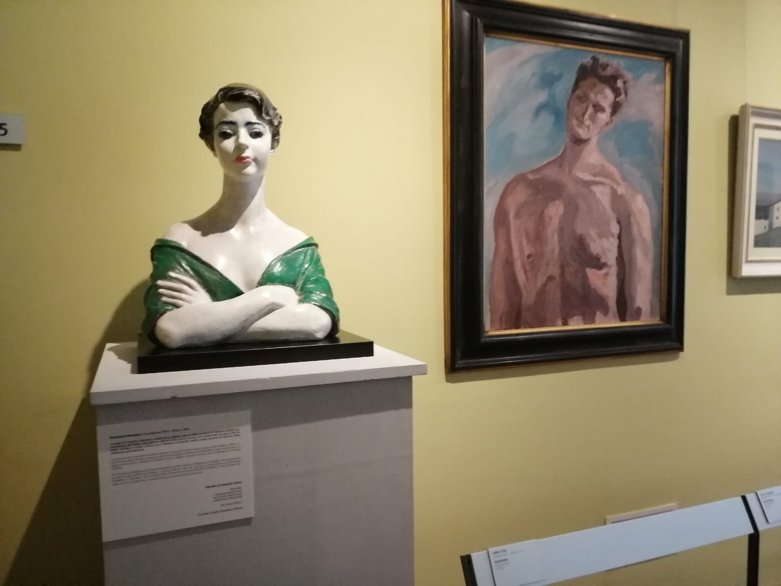 Ecco, per esempio, come opera la magia ideata e voluta dal curatore Domenico Maria Papa: l’Ercole di Arturo Martini (già di proprietà del Gamba), si ridimensiona nella sua imponenza per ritrovarsi faccia a faccia con San Giorgio e il drago e Lo sposalizio del principe con la principessa, altra opera dello scultore trevigiano, che sembra essere uscita dalla facciata di una chiesa medievale, ma che riesce a compensare la talvolta imponente presenza dell’umano diventato dio.