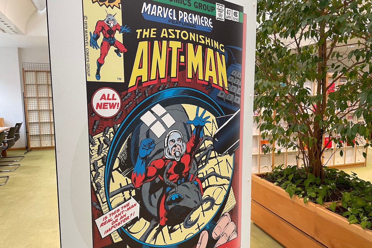 Sulla tecnologia si basano invece i pannelli che raccontano del miliardario Tony Stark, genio e playboy – ma anche con diversi problemi di temperamento e di alcolismo –, destinato a costruire l’ipertecnologica armatura che lo renderà l’Invincibile Iron Man. Così come le nanotecnologie e le nanoparticelle che renderanno il dottor Hank Pym il primo Ant-Man, capace di viaggiare nei mondi subcellulari e subatomici.