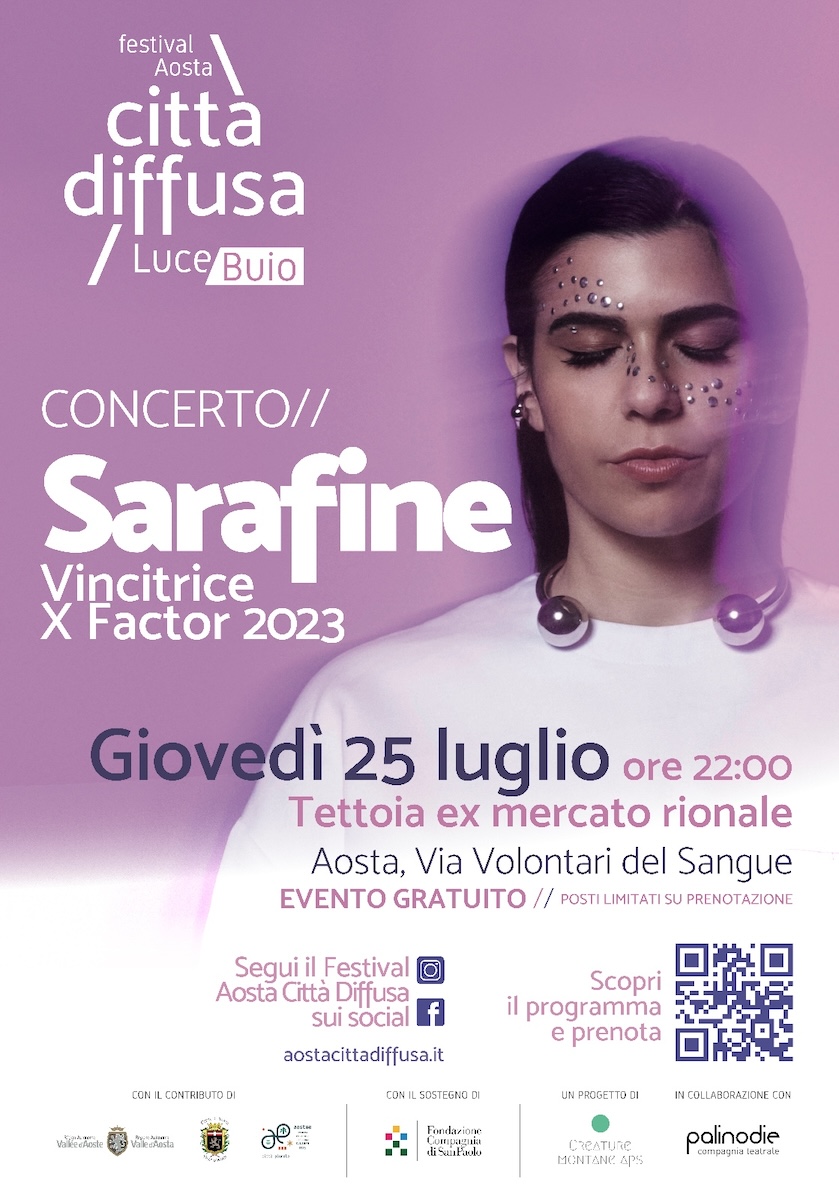 Tra Luce e Buio: questo è il tema della quinta edizione del Festival Aosta Città Diffusa che da giovedì 25 a domenica 28 luglio, occuperà diversi spazi della città di Aosta con teatro, poesia e parole. La novità di quest’anno è però la musica che avrà un ruolo di rilievo grazie a due ospiti d’eccezione: Sarafine, vincitrice di X Factor 2023 che si esibirà durante la serata di giovedì 25 e Caterina Cropelli che suonerà agli Orti di Sant’Orso durante la serata conclusiva del festival.