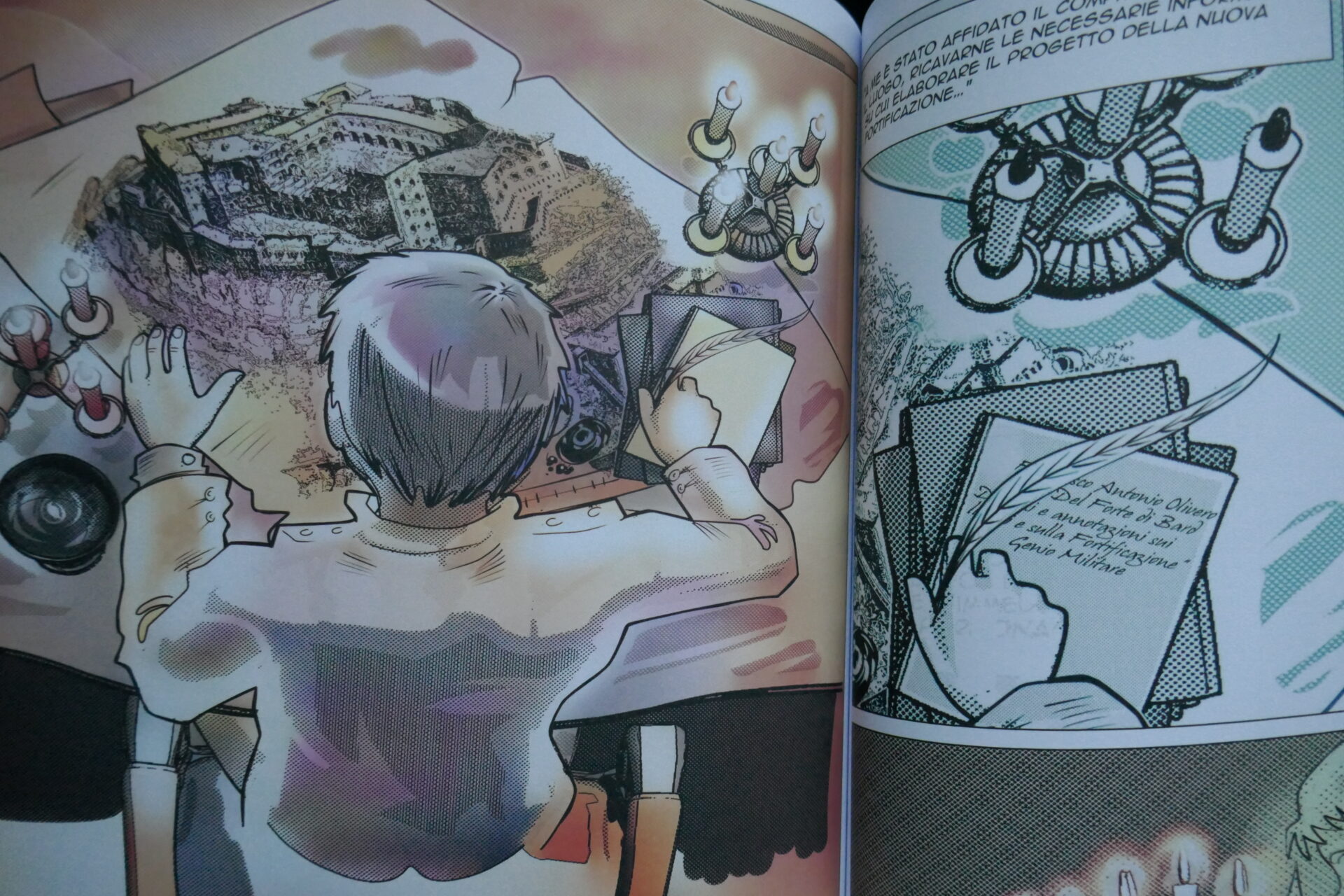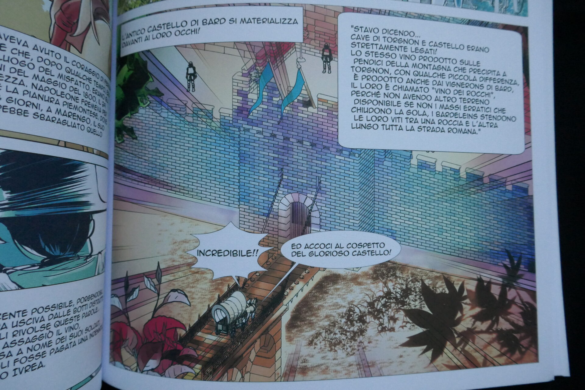“Questa è meravigliosa” commenta indicando una vignetta, “Anche questa. C’è solo l’imbarazzo della scelta!”. Margherita Barsimi, insegnante di lettere in pensione, guarda con ammirazione la fresca creazione: “Fort, bien Fort, très Fort!” sottotitolata “Storie attorno al Forte di Bard”. Si tratta di una graphic novel, “un gradino più in alto rispetto al fumetto, perché c’è molto più testo. E’ un’assoluta novità, non c’è nulla del genere in Valle d’Aosta” decanta Barsimi “è un primo di soggetto valdostano fatto da due valdostani”.