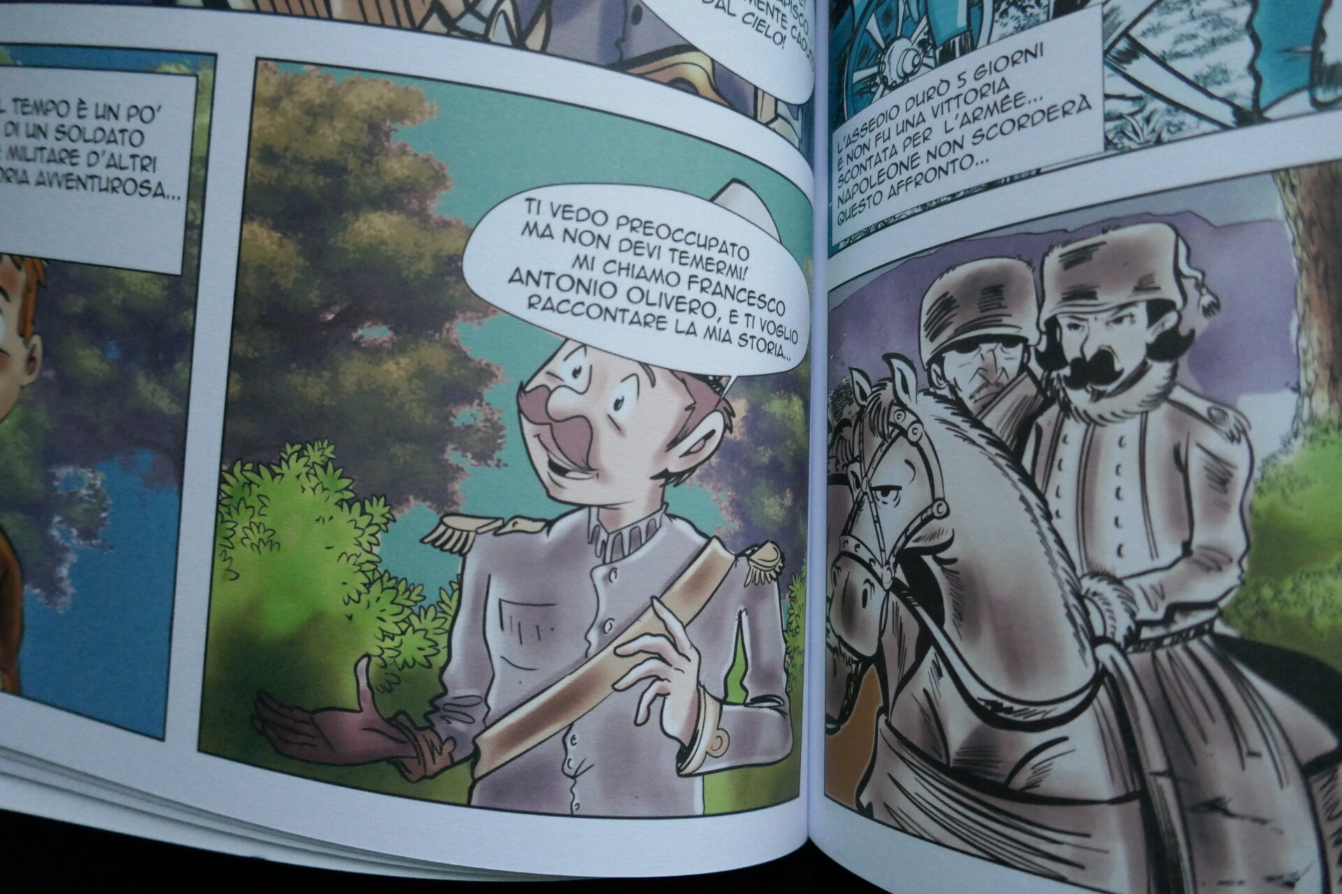 “E’ un lavorone” rivela Barsimi, riferendosi soprattutto alla parte pratica eseguita da Roveyaz. Per questo il lavoro si è dilatato in un anno: durante tutto il corso del 2020, ogni 15 giorni, la graphic novel usciva a puntate sul Corriere della Valle, così da dare il tempo all’illustratore di realizzare le tavole successive. L’ultima uscita è avvenuta il 5 maggio 2021, anniversario dei 200 anni dalla morte di Napoleone. I lettori del settimanale sono rimasti così tanto affascinati dalla bellezza delle vignette e dalla novità del progetto che quando sono state esposte in vetrina da Rigoli a Pont-Saint-Martin molte persone domandavano se era possibile acquistarle. A questo punto “ho capito che i tempi erano maturi e ho chiesto alla Tipografia Valdostana di farmi un preventivo di stampa”. Dopodiché è stato firmato un accordo tra i comuni della Comunità Montana: ogni comune, in base alla popolazione, ha comprato una quota di copie “chi duecento, chi trecento, chi trenta, come Perloz che è molto piccolo. Quasi tutti i comuni della Bassa Valle hanno aderito” testimonia la professoressa.