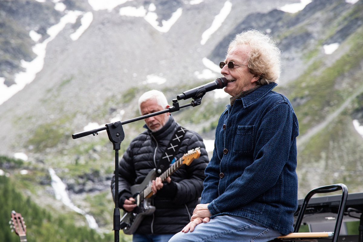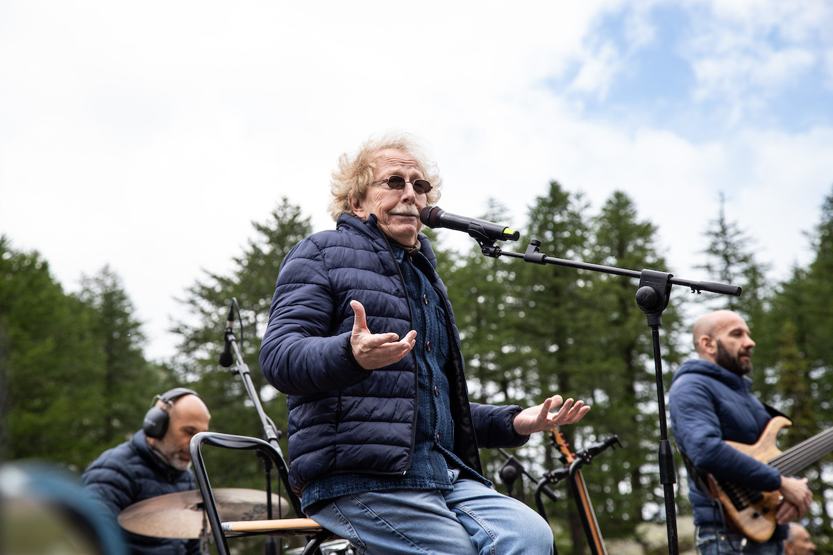 “Ma questo è Woodstock!“. Ha esordito così, in riva al lago d’Arpy, il cantautore milanese Fabio Concato, protagonista del concerto della rassegna Musicastelle in Valdigne sabato 1° luglio. La giornata, contraddistinta da un vento particolarmente forte, ha fatto da scenario allo spettacolo dell’interprete, che ha scherzato con il pubblico tra una canzone e l’altra sul freddo e sulla sua età, ma anche sulla bellezza del paesaggio e la sua carriera: “Sono a regola eh, anche se a 2000 metri di altezza ho richiesto una bombola d’ossigeno e quindi mi sento tranquillo”. O ancora: “Vorrei sdraiarmi qui, ora, con un plaid e dormire, sarebbe bellissimo!”.