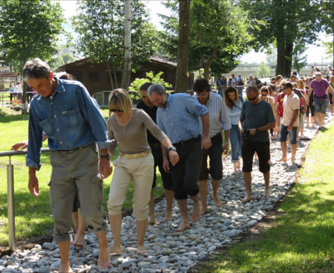 “Via le scarpe, tutti a piedi nudi”. E’ stata inaugurata così, sabato scorso a Morgex, la prima pista di barefooting in Valle d’Aosta e uno dei pochi esempi reperibili in Italia. Questa realizzazione, insieme agli itinerari tematici, è resa possibile grazie ai cofinanziamenti europei nell’ambito del progetto “Autour du Mont-Blanc” che si inserisce nel “PIT Espace Mont-Blanc”.
