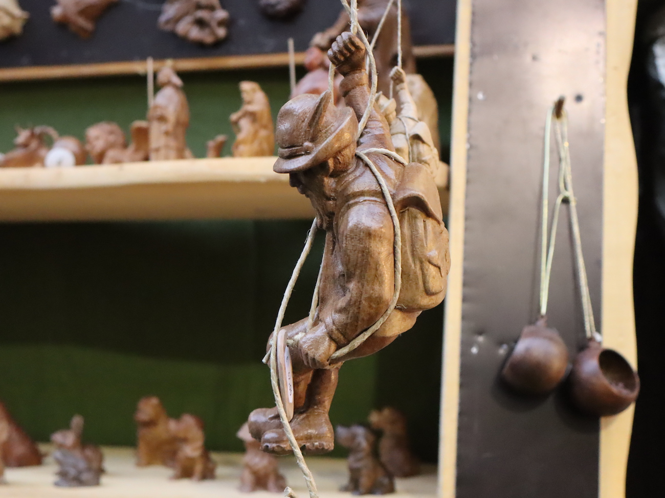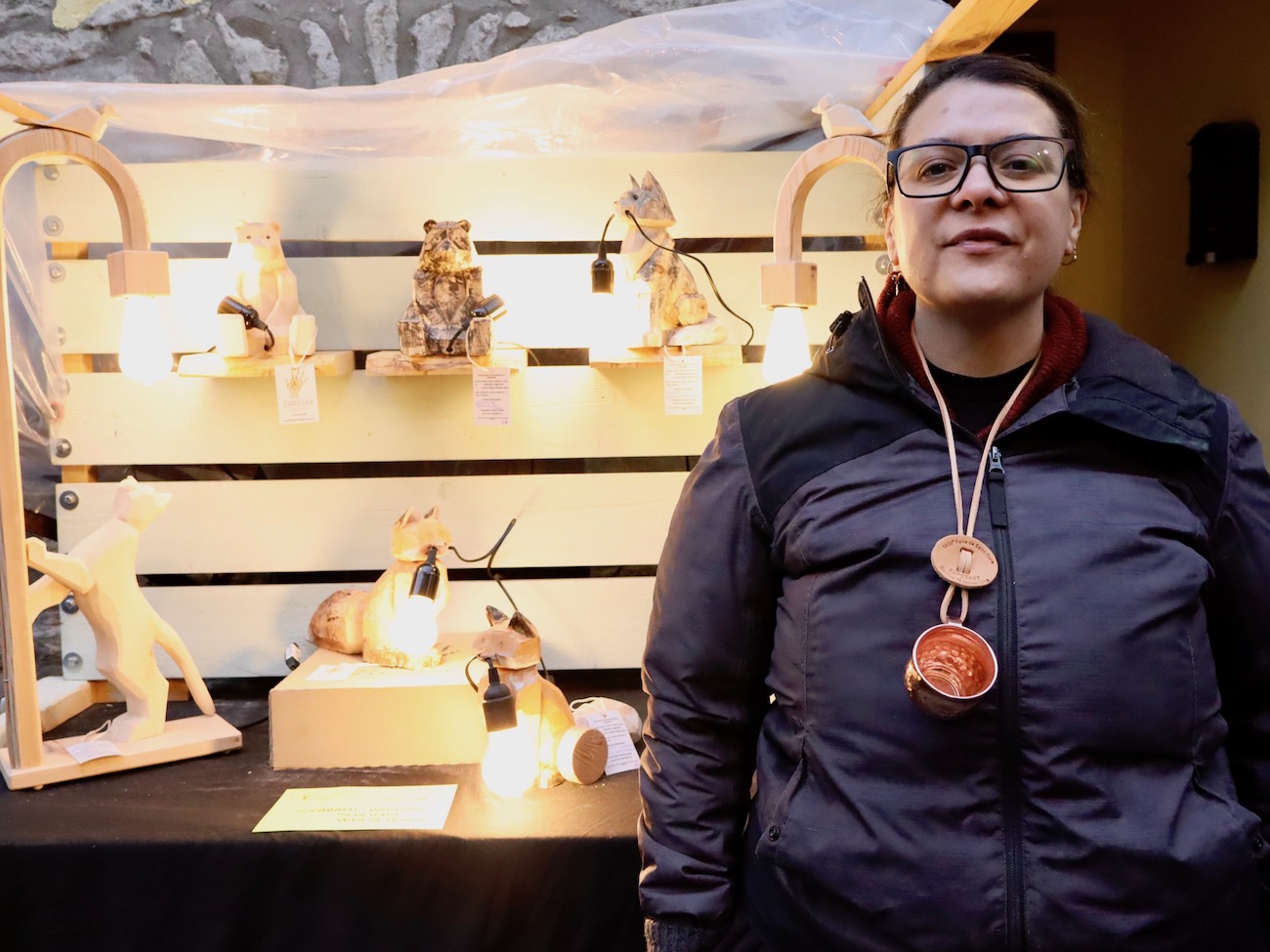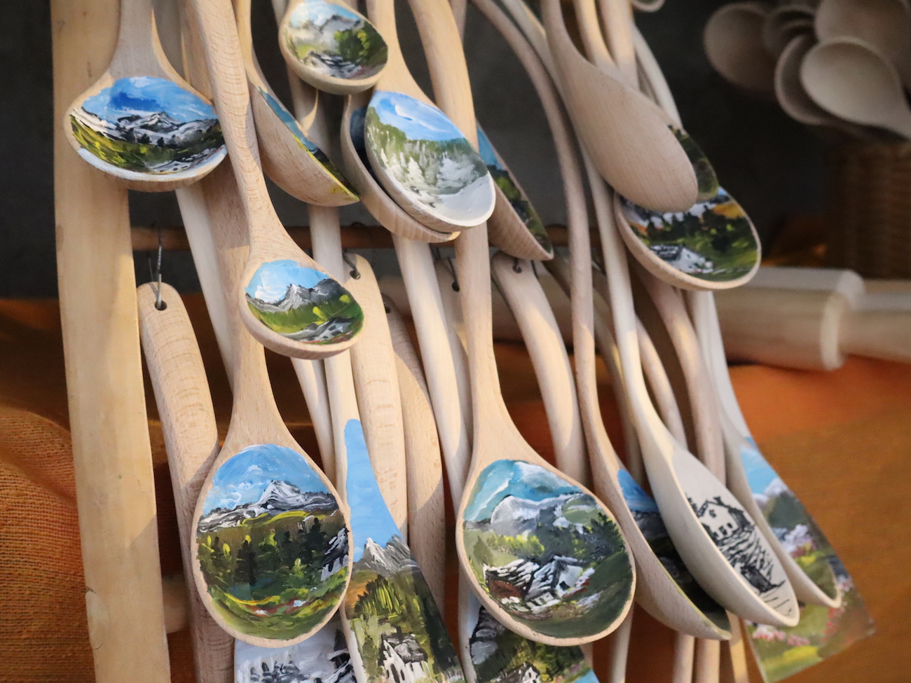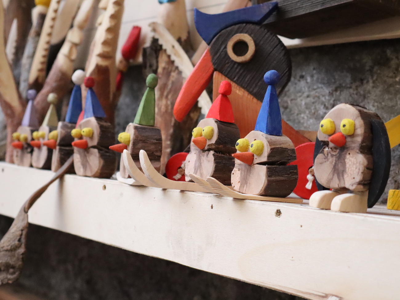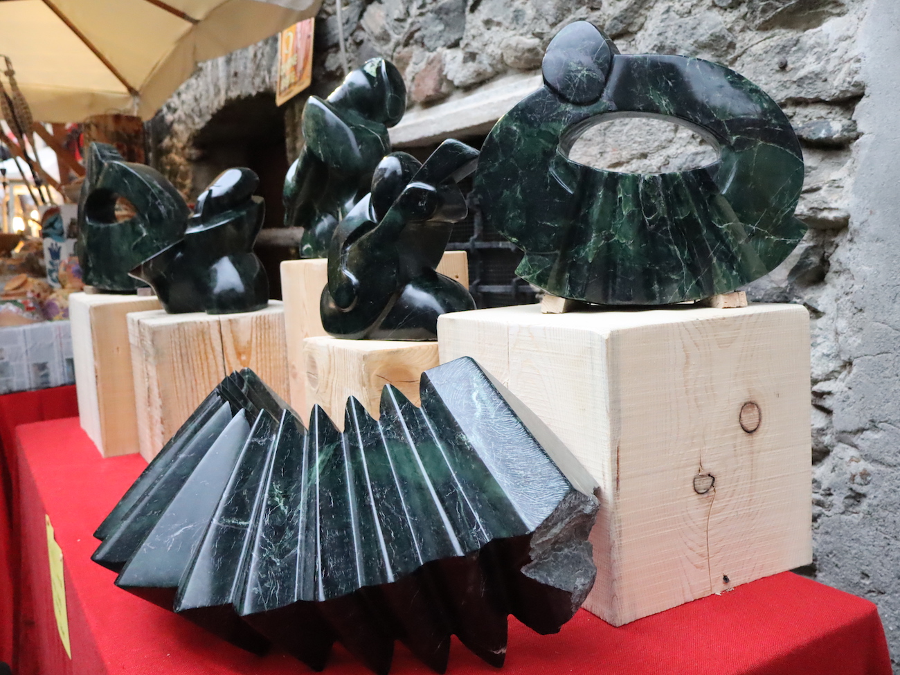 Tra i banchetti della Petite Foire si nascondono anche storie di amicizia. Da ormai cinque anni, a Donnas, Cyrille Chevalier e Antonio Magli condividono lo stesso banchetto. “Ci siamo conosciuti frequentando corsi di scultura. A Morgex, nei primi anni duemila” raccontano. “Partecipare insieme alla Fiera significa darsi una mano”.