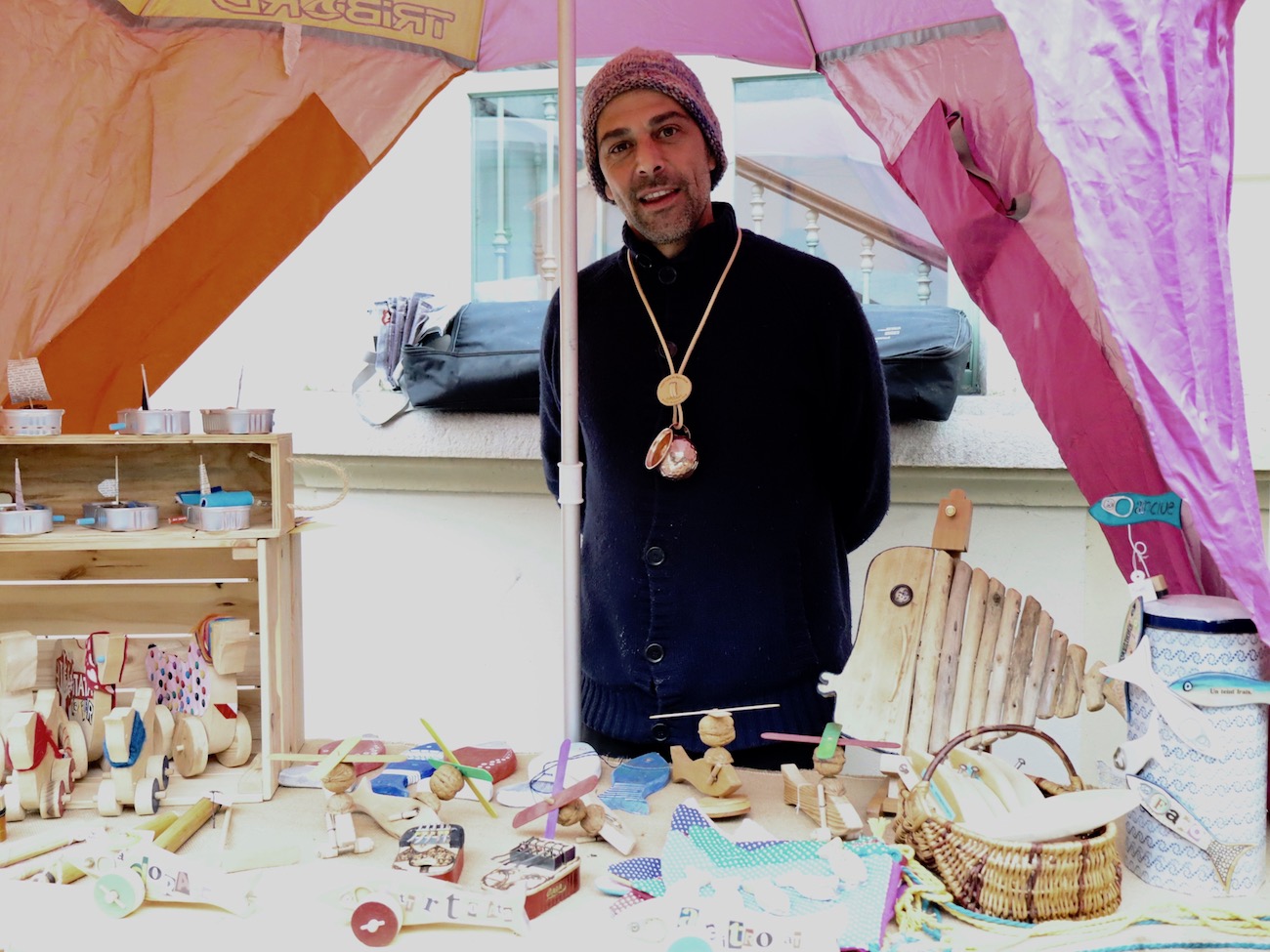 Anche la categoria ‘non tradizionale’ trova il suo spazio alla Petite Foire. L’artista-musicista di Aosta Luca Gambertoglio ha portato, per la prima volta a Donnas, “Banchetto e Bancarella”. Qui i tatà diventano trotatà. “L’idea è quella di trasportare dal mare alla montagna, come facevano gli acciugai”. Trasportare “prodotti di artigianato ludico”: trotatà da tiro, barchette e oggetti sonori legati al mondo della musica e dell’infanzia.