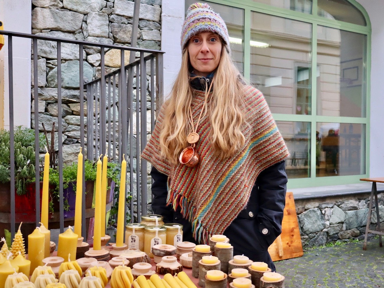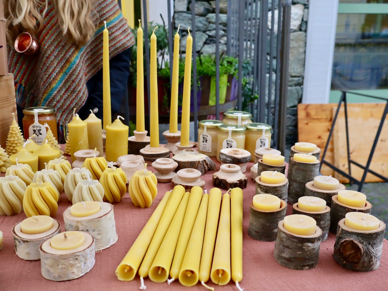 Sempre per il ‘non tradizionale’, Sara Cuffari addolcisce la Foire con profumi e sapori di miele. Sul suo banchetto trovano spazio miele di alta montagna e candele ecologiche in cera d’api. Oltre ad esporre, “svolgo attività divulgative, didattiche e artistiche durante le quali si creano candele, cosmetici e unguenti” spiega l’apicoltrice di Roisan.