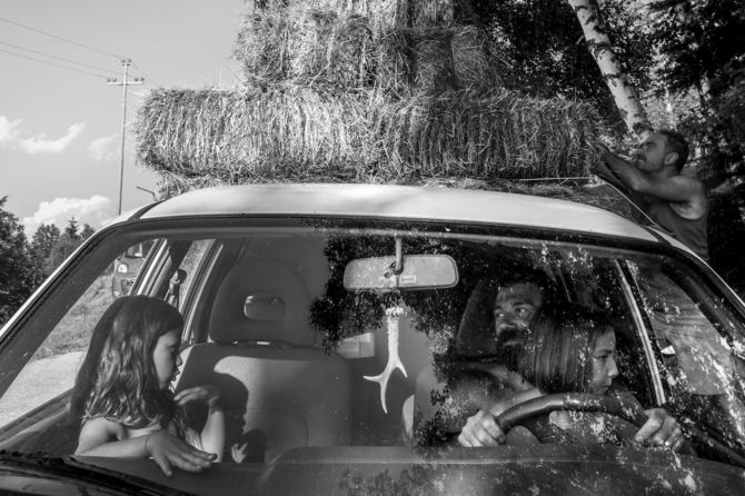 "Tout simplement… famille rurale è un elogio alla lentezza – ricorda Bravetta – Una serie di fotografie che raccoglie oltre un anno di vita di tre gruppi familiari. Senza che succeda nulla di eclatante. Nessun grande evento, niente che potrebbe riempire le prime pagine dei giornali, ma soltanto lo scorrere lento della quotidianità sulle montagne della Valle d’Aosta. Così ogni momento della giornata, dal risveglio con i bambini alle camminate nei prati, passando attraverso la fatica nell’orto, nella stalla e in cucina, diventa per il fotografo una scusa per attendere e raccontare il miracolo di un tempo che sembra straordinariamente allargato, dilatandosi in ogni direzione".