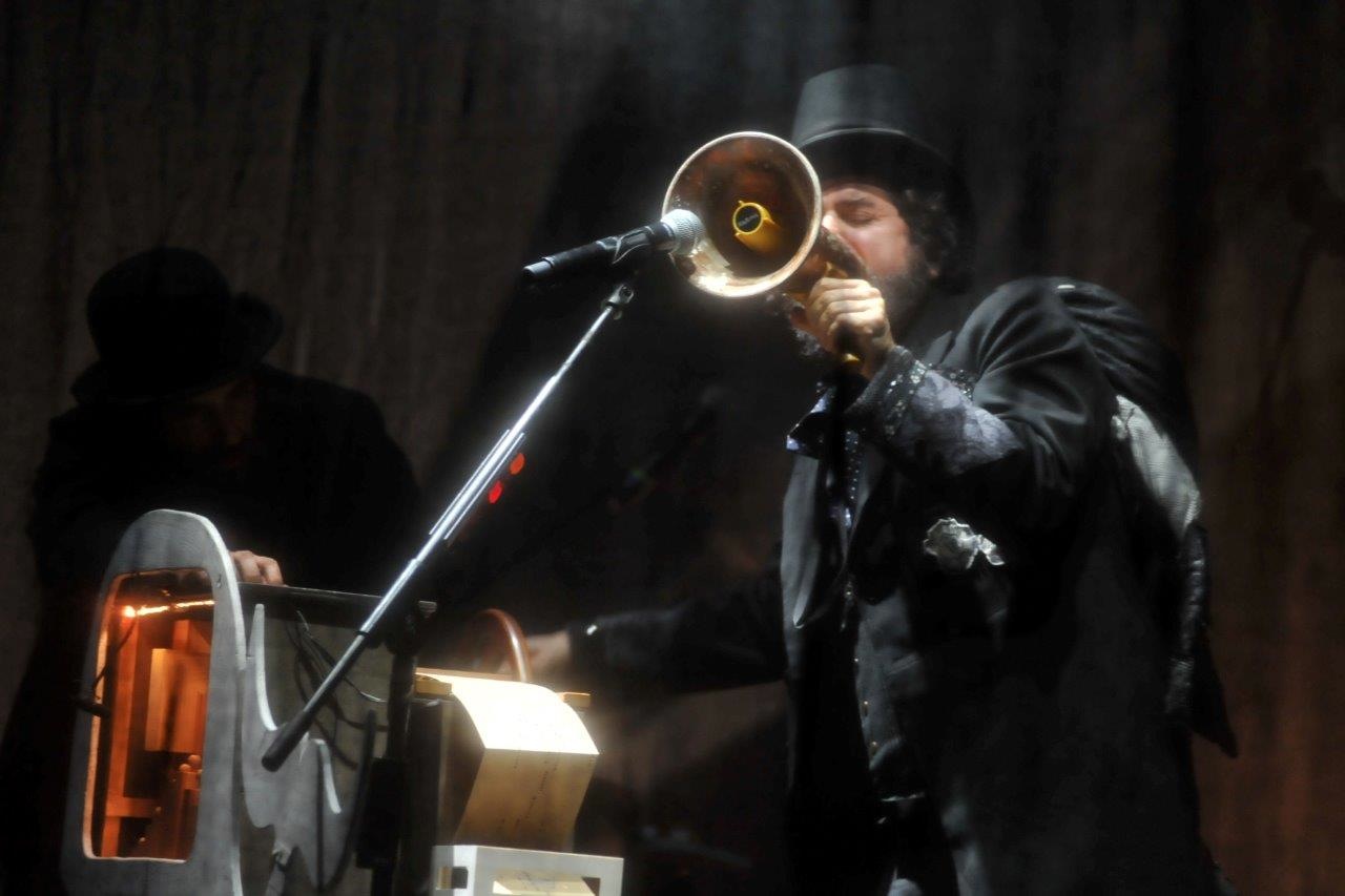 Dietro, due ore e mezza di concerto che abbracciano integralmente i quasi 27 anni di carriera di Capossela, che da cantautore con riferimenti ben precisi – Tom Waits su tutti – è passato dalle “Canzoni a manovella” (di diciassette anni fa, e mai titolo fu più azzeccato) ad uno spettacolo totalizzante, con il gioco di ombre di Anusc Castiglioni a volte pirotecnico, a volte poetico ma sempre immerso perfettamente nelle atmosfere sonore, a farla da padrone.