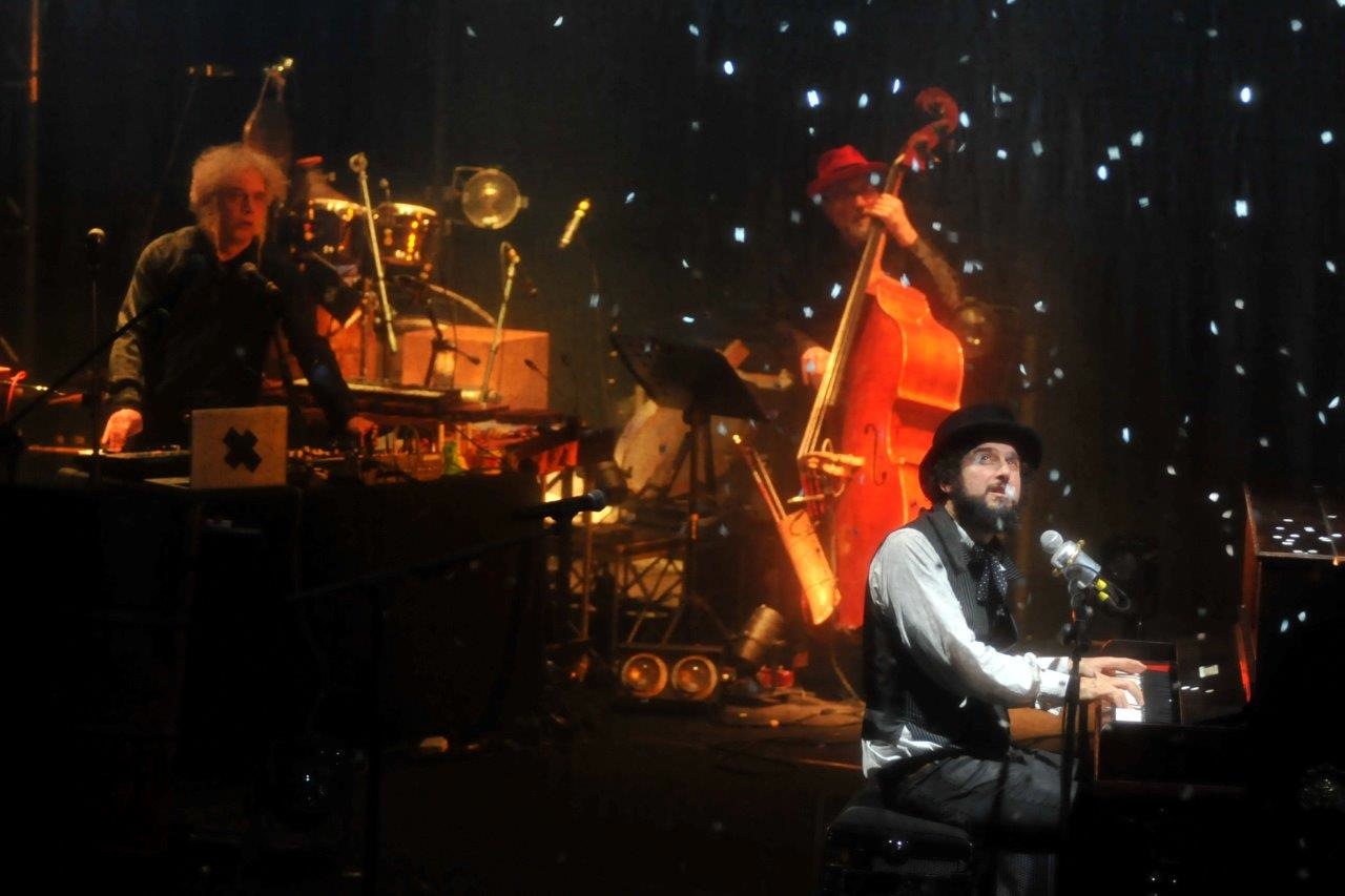 Montagne che, parole dello stesso Capossela ieri sera allo Splendor di Aosta per la Saison Culturelle, ama molto, come l’inverno e come il mese dicembre – lui che tanto scrive del mare, e delle corde secche delle navi sotto la salsedine ed il sole – e la neve, che cade finta sul palco e vera all’esterno del teatro. “Una neve ‘complice’ – dice al microfono – che vi permetterà di tornare a casa tranquilli stasera”.