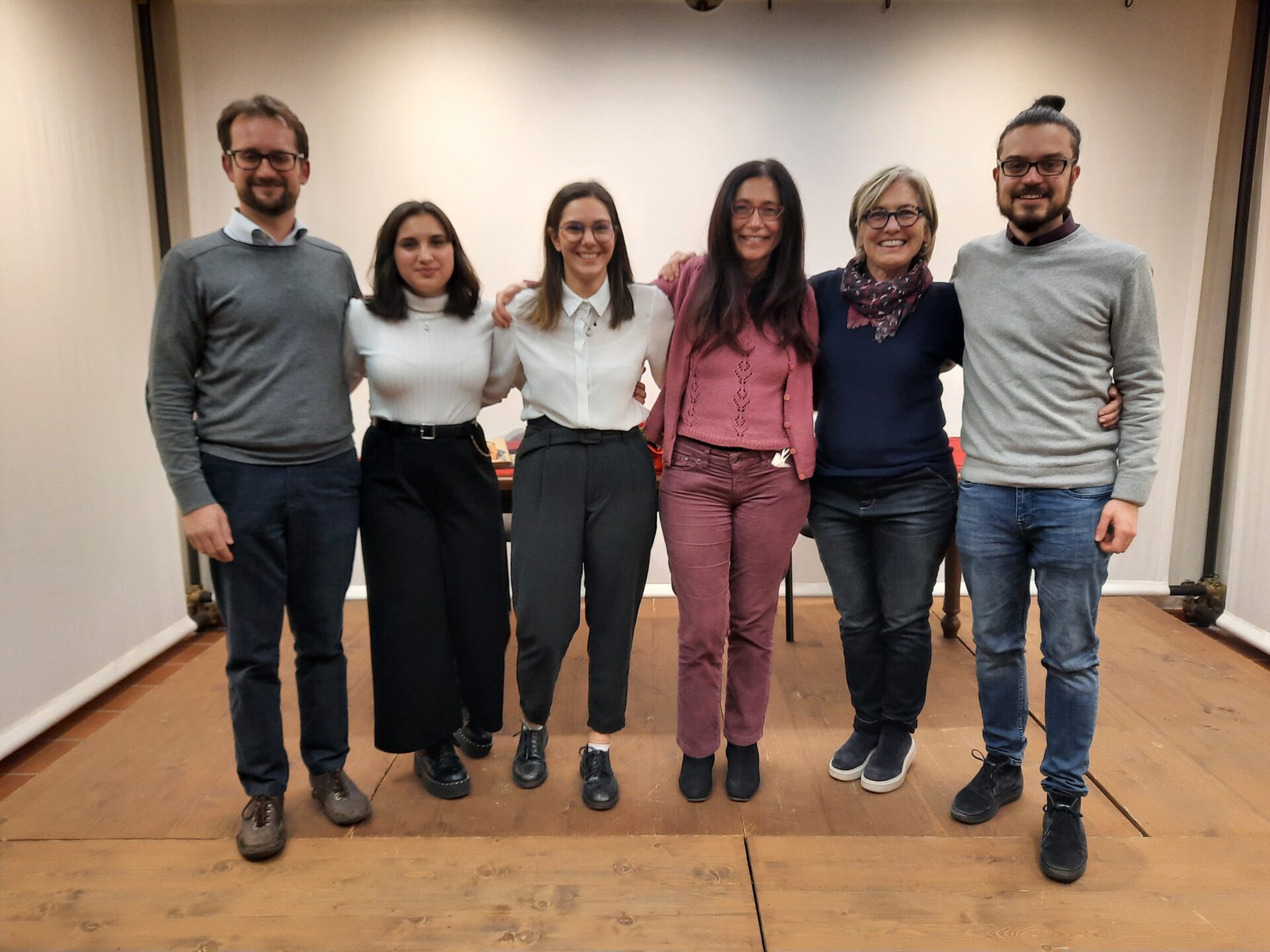 Fabio Badery, Vanessa Lapaglia, Giada Treves, le professoresse Laura Lucchese e Luciana Pramotton, l’aiuto bibliotecario Jean Marie Rey